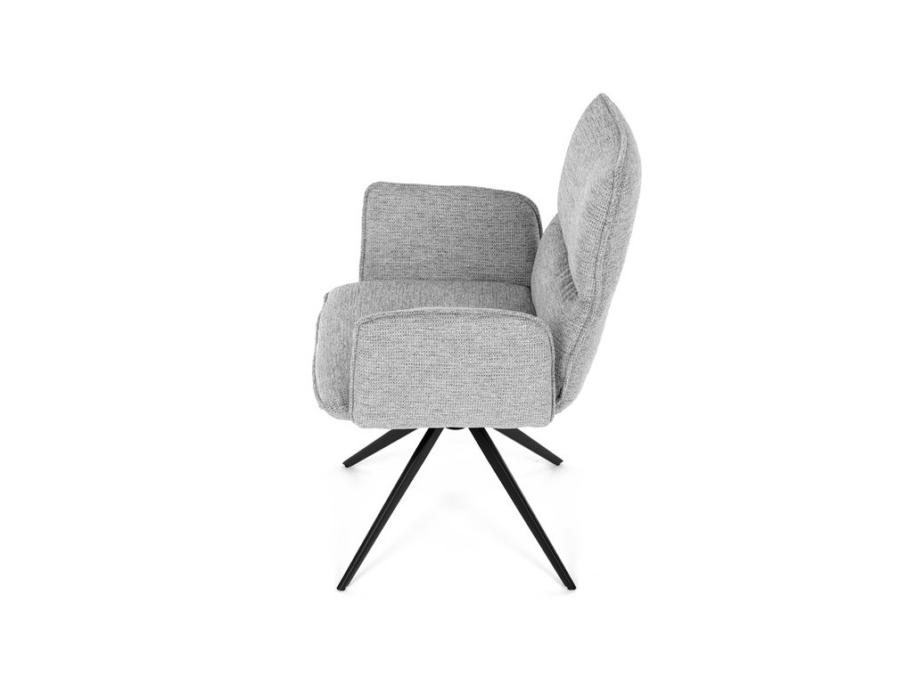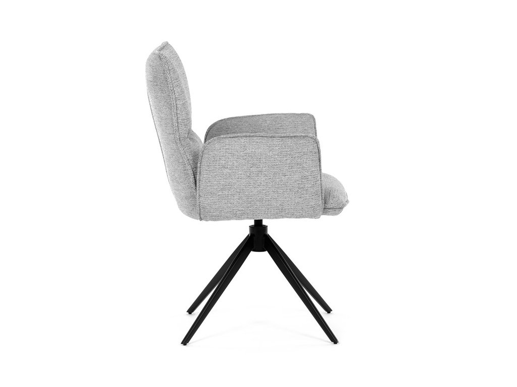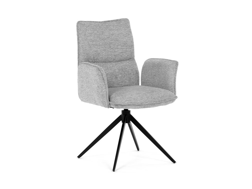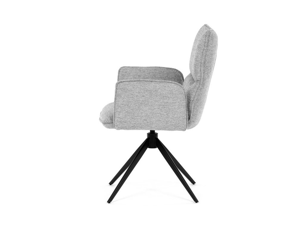 Jídelní židle DCH-D1328 GREY2 značky Autronic vyniká 360° vratným mechanismem, který umožňuje plynulý a tichý otáčivý pohyb pro maximální flexibilitu při sezení. Čalounění z kvalitní šedé látky poskytuje příjemný a měkký povrch s decentní texturou, která zvyšuje komfort i estetickou hodnotu. Konstrukce područek je pevně integrována do čalouněné části, což zajišťuje pohodlnou oporu paží během sezení. Stabilní podnož je vyrobena z černě práškovaného kovu, který garantuje vysokou pevnost a odolnost proti opotřebení, přičemž design podnože se skládá ze čtyř úhlových nohou rozložených do širokého stabilního tvaru. Ergonomicky tvarovaný sedák a opěradlo podporují správné držení těla a přispívají k dlouhodobému pohodlí při používání. Židle je vhodná pro moderní jídelny i pracovní prostory, kde je vyžadována kombinace komfortu a funkčnosti. Nosnost židle odpovídá standardním požadavkům na jídelní sezení a její rozměry jsou optimalizovány pro univerzální použití v interiéru.