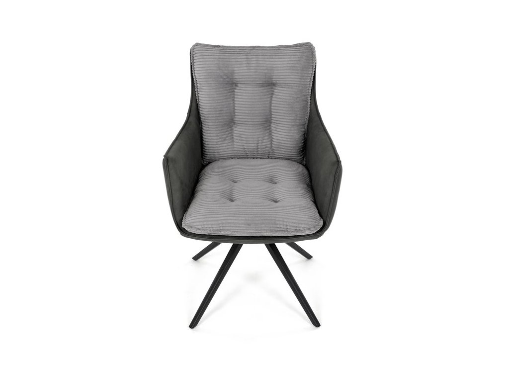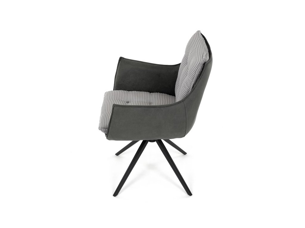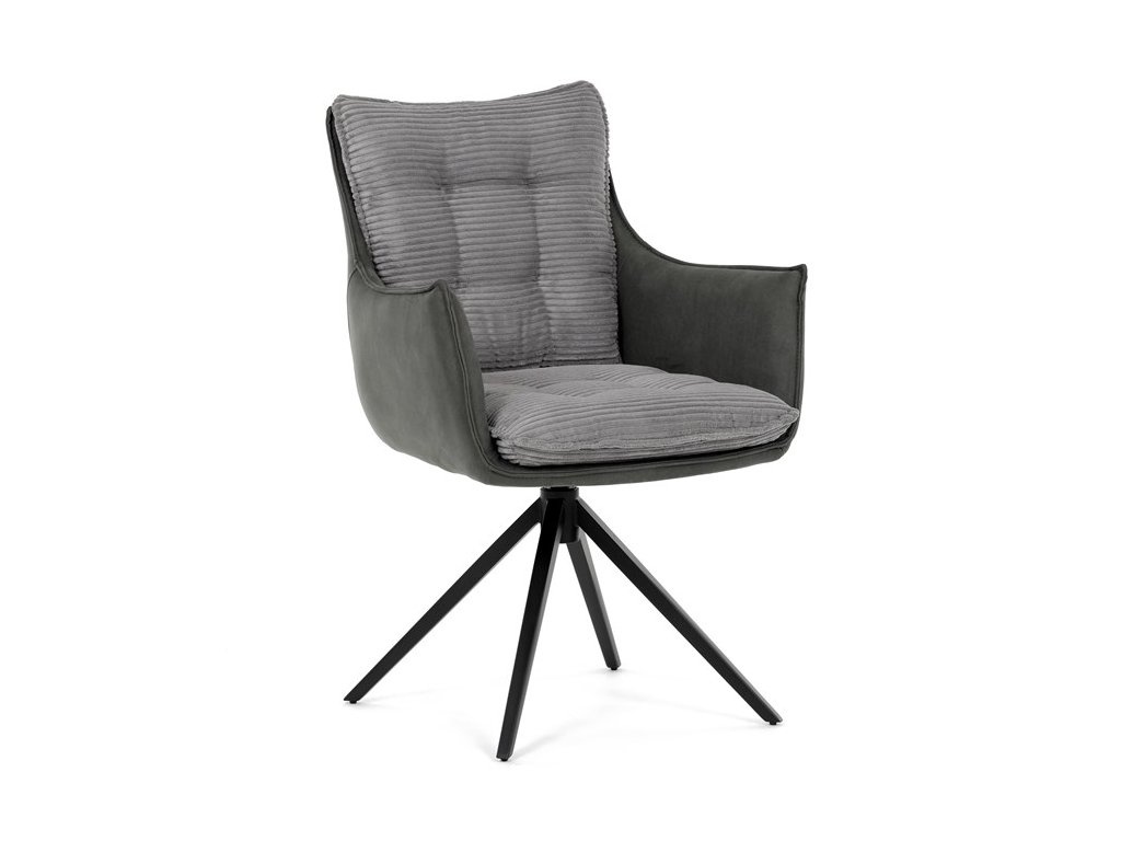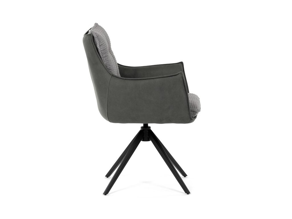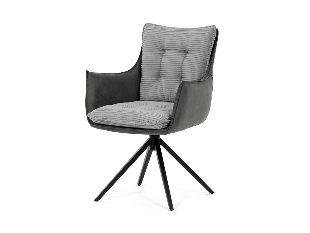 Jídelní židle DCH-D1345 GREY2 značky Autronic vyniká otočným 360° vratným mechanismem, který zajišťuje plynulý a tichý návrat do výchozí polohy, což přispívá k pohodlí a praktičnosti při používání. Konstrukce židle kombinuje pevný černý kovový rám s moderním designem čtyřnohé podnože, která zaručuje stabilitu a dlouhou životnost. Sedák a opěradlo jsou potaženy kombinací dvou typů šedé látky, přičemž vnitřní část tvoří měkký, žebrovaný textil s vysokým polstrováním, které poskytuje ergonomickou podporu a komfort i při delším sezení. Čalounění je pečlivě prošité a tvarované tak, aby zvýraznilo estetiku a zároveň zajistilo dostatečnou prodyšnost materiálu. Područky jsou integrovány do celkové konstrukce sedáku, což zvyšuje komfort bez omezení pohybu. Díky kombinaci kvalitních materiálů a funkčních prvků je židle vhodná pro moderní jídelny i pracovní prostory, kde je kladen důraz na design i uživatelský komfort.