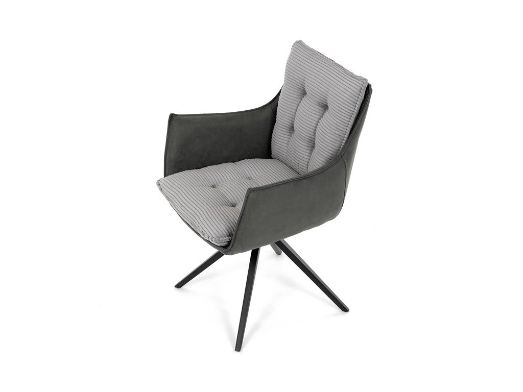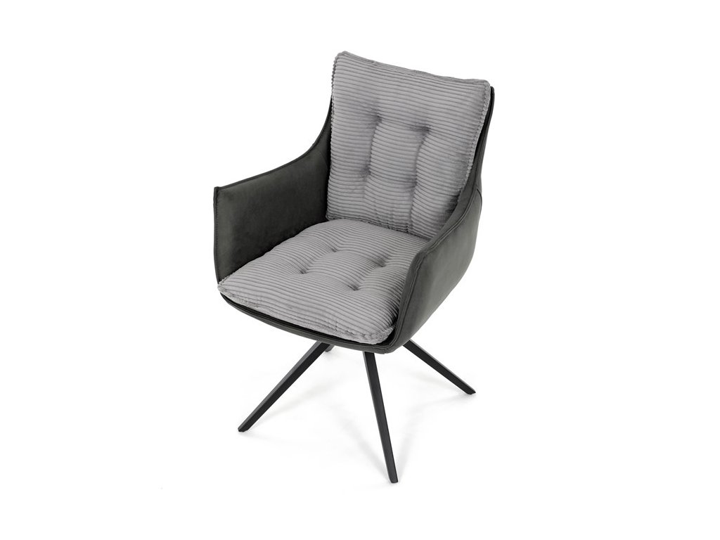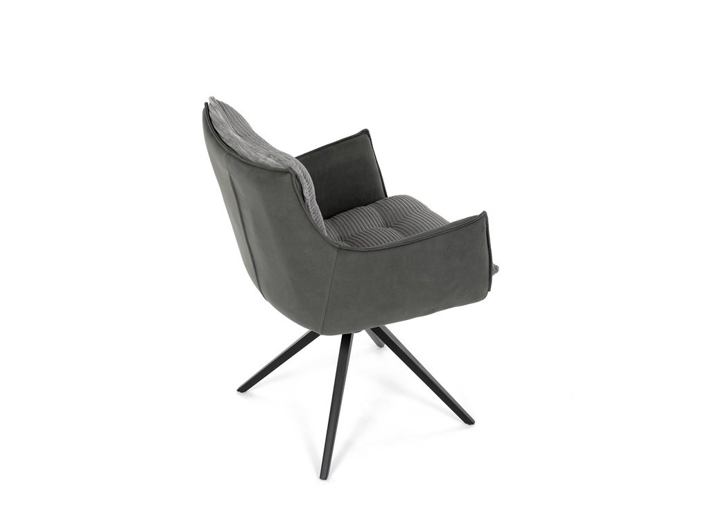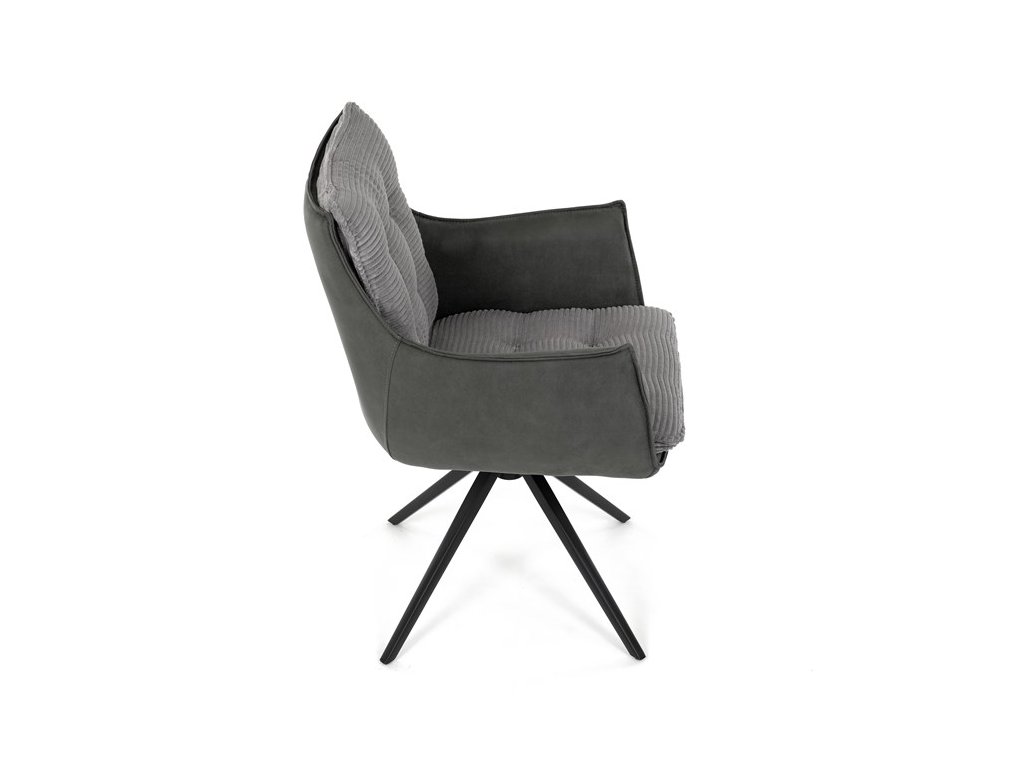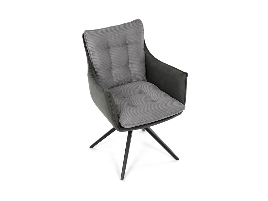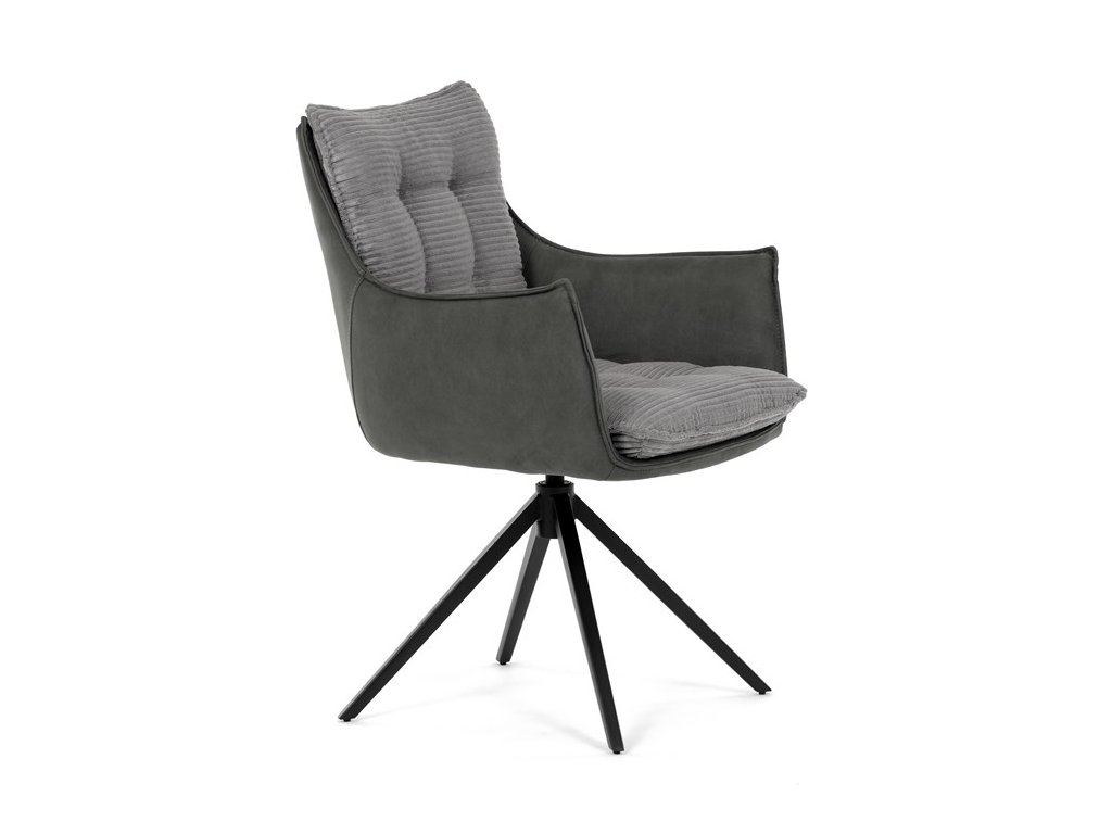 Jídelní židle DCH-D1345 GREY2 značky Autronic vyniká otočným 360° vratným mechanismem, který zajišťuje plynulý a tichý návrat do výchozí polohy, což přispívá k pohodlí a praktičnosti při používání. Konstrukce židle kombinuje pevný černý kovový rám s moderním designem čtyřnohé podnože, která zaručuje stabilitu a dlouhou životnost. Sedák a opěradlo jsou potaženy kombinací dvou typů šedé látky, přičemž vnitřní část tvoří měkký, žebrovaný textil s vysokým polstrováním, které poskytuje ergonomickou podporu a komfort i při delším sezení. Čalounění je pečlivě prošité a tvarované tak, aby zvýraznilo estetiku a zároveň zajistilo dostatečnou prodyšnost materiálu. Područky jsou integrovány do celkové konstrukce sedáku, což zvyšuje komfort bez omezení pohybu. Díky kombinaci kvalitních materiálů a funkčních prvků je židle vhodná pro moderní jídelny i pracovní prostory, kde je kladen důraz na design i uživatelský komfort.