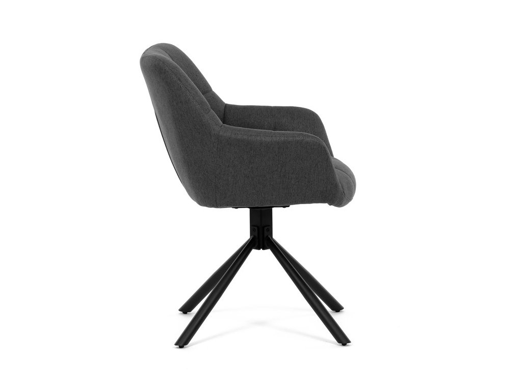 Otočné křeslo značky Autronic přináší moderní design a maximální pohodlí do vašeho interiéru. Čalounění v tmavě šedém odstínu v kombinaci s prošívanými detaily vytváří luxusní vzhled, který se skvěle hodí do obývacího pokoje, pracovny nebo kanceláře. Stabilní kovová podnož v černé barvě zajišťuje pevnost a odolnost, zatímco otočný mechanismus umožňuje flexibilní pohyb a komfortní užívání. Ergonomicky tvarovaný sedák s područkami poskytuje vynikající oporu a pohodlí, díky čemuž je toto křeslo ideální volbou pro relaxaci i pracovní činnosti.