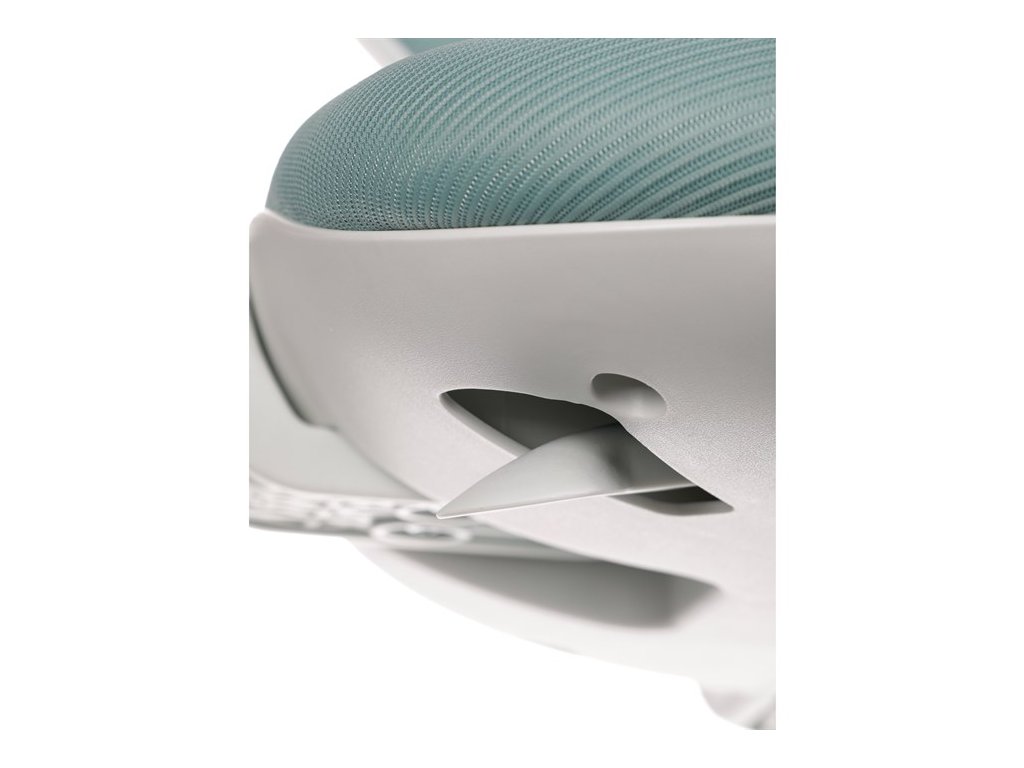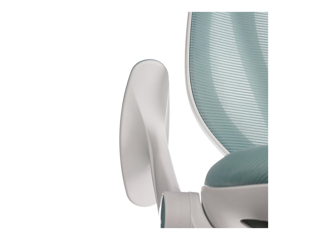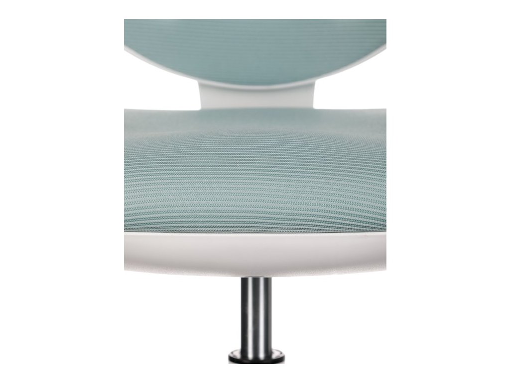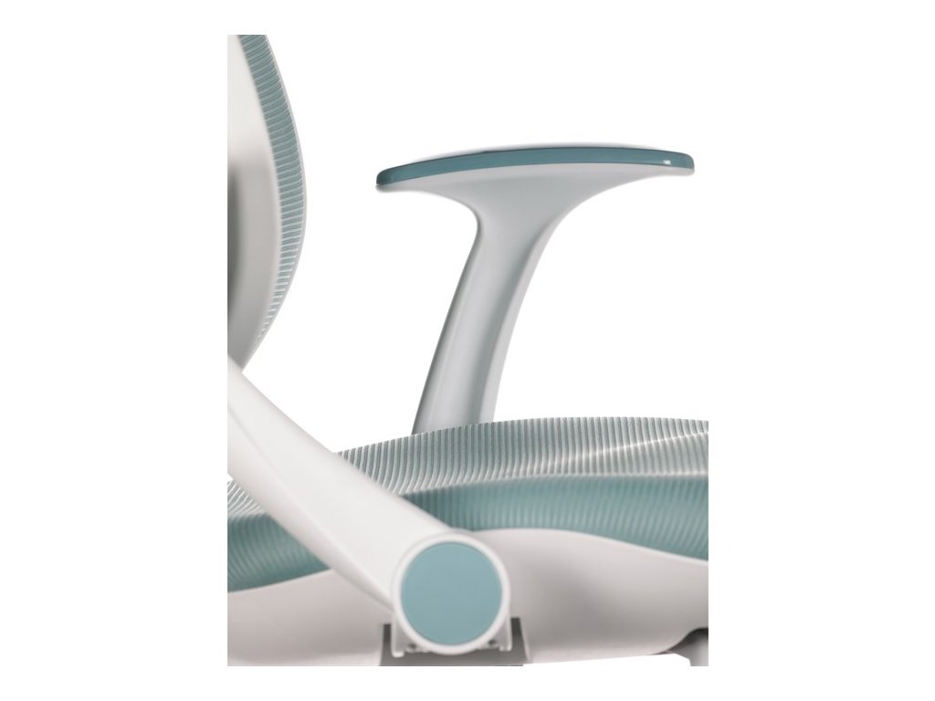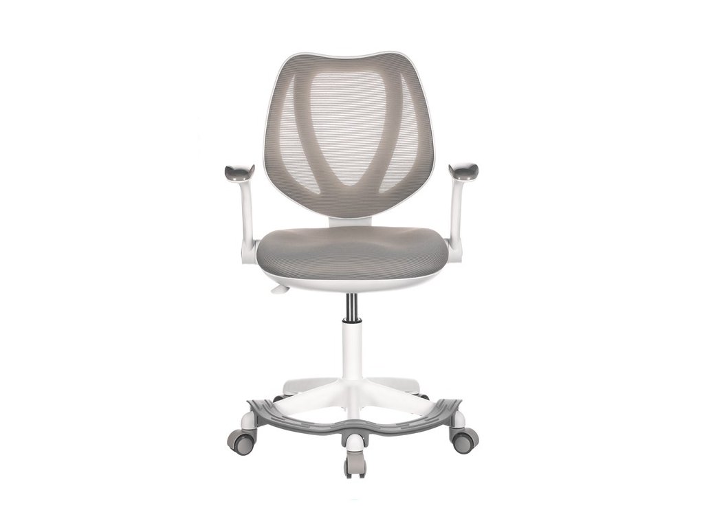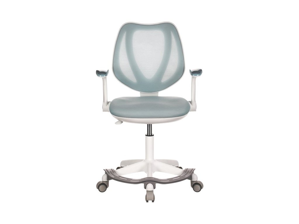 Dětská židle v příjemných pastelových barvách spolu s bílou kostrou nabízí jednoduchý a elegantní design. Židle má pevný opěrák potažený prodyšným síťovaným materiálem. Sedák ve stejném potahu poskytuje dostatek pohodlí díky svému vyměkčení. Pro pocit pohodlí slouží pevné područky, které jsou na své vrchní části opatřeny lesklým plastovým povrchem v barvě potahového materiálu. Důležitá je také integrovaná opěra nohou, která přispívá k pohodlnému sezení. Židle je opatřena speciálními funkčními kolečky, která se při zatížení automaticky zablokují, což zabraňuje nechtěným pohybům židle.