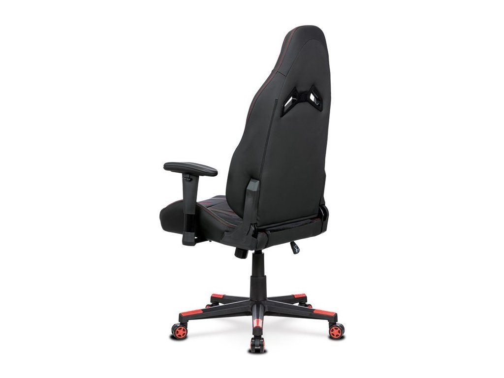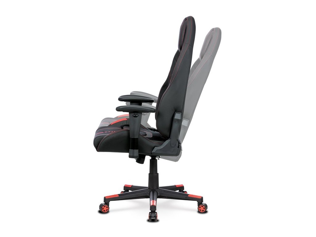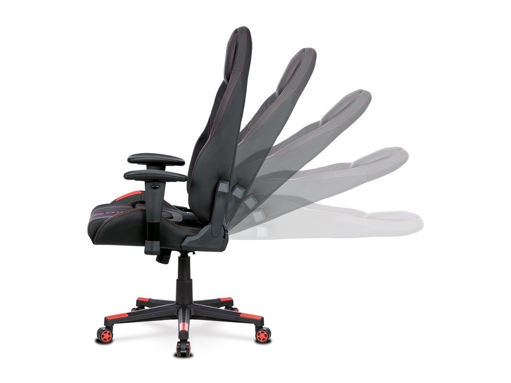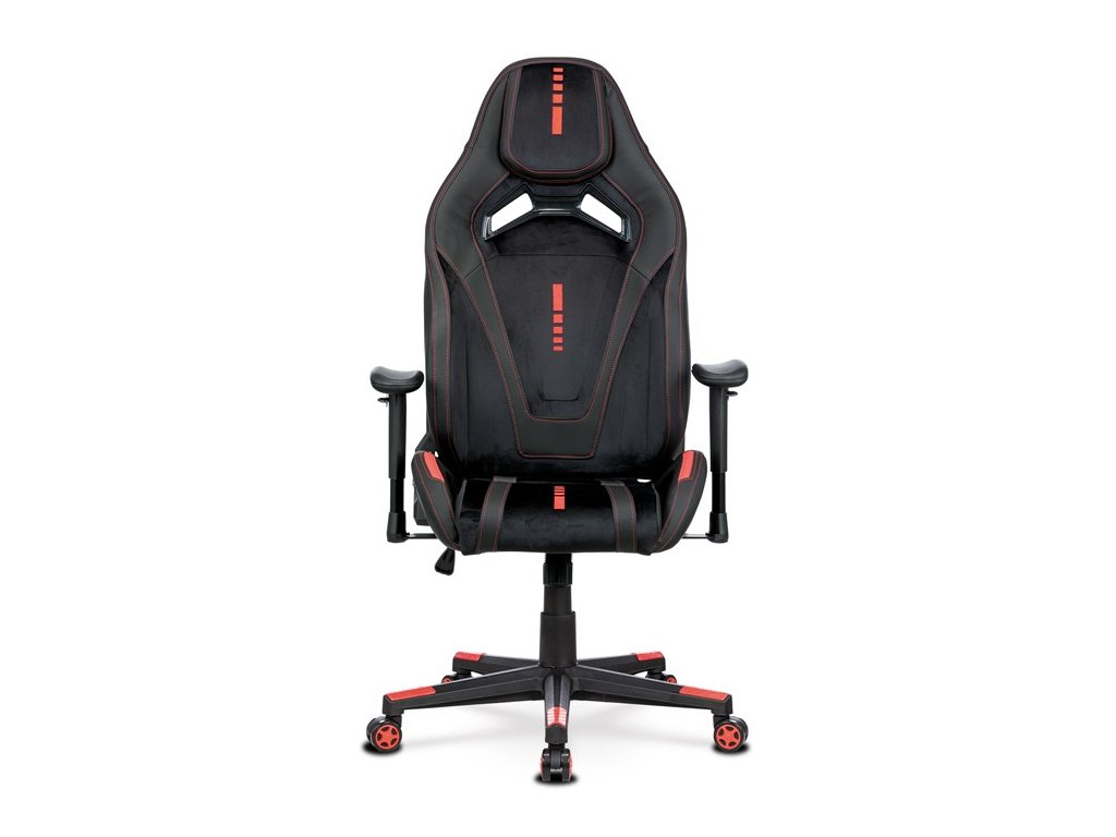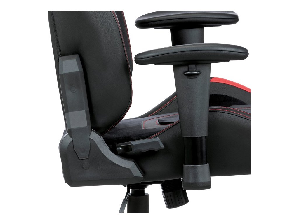 Herní křeslo, houpací mechanismus, černá látka, KA-F07 RED