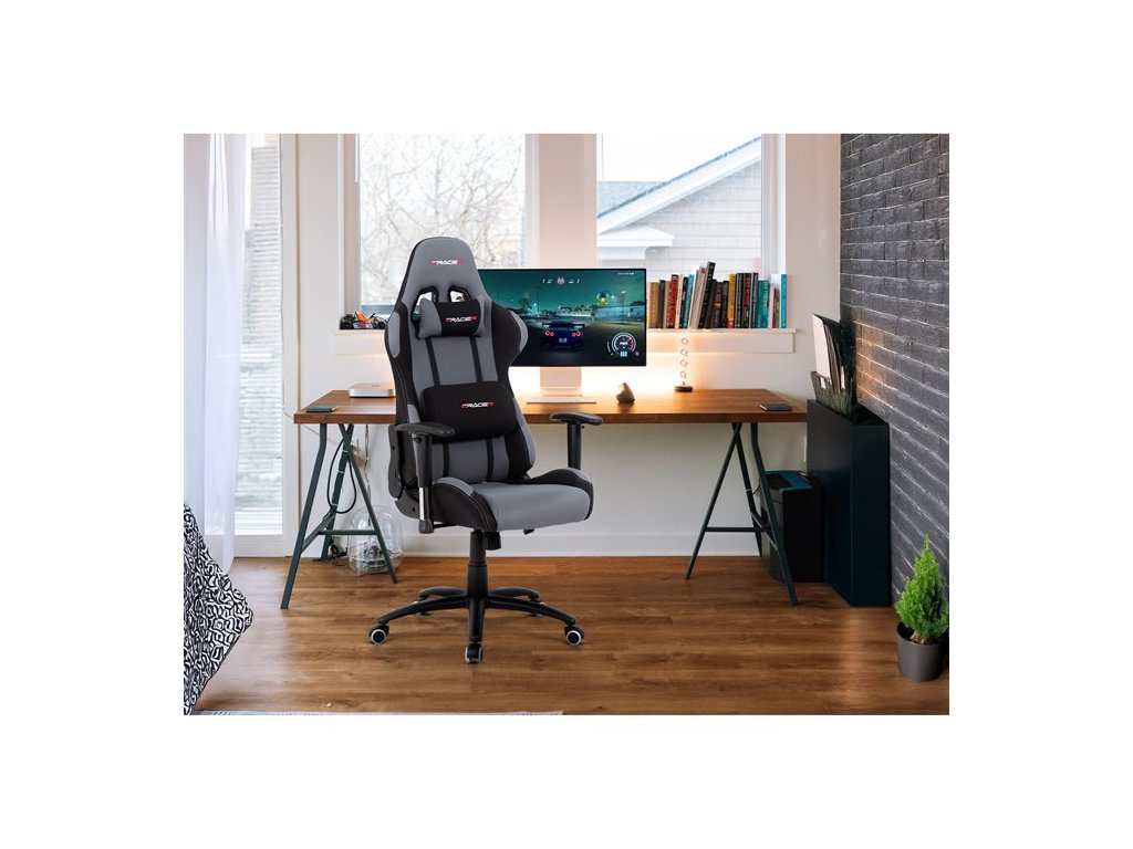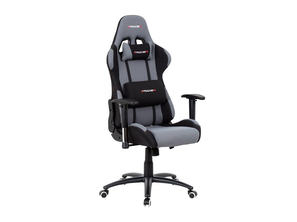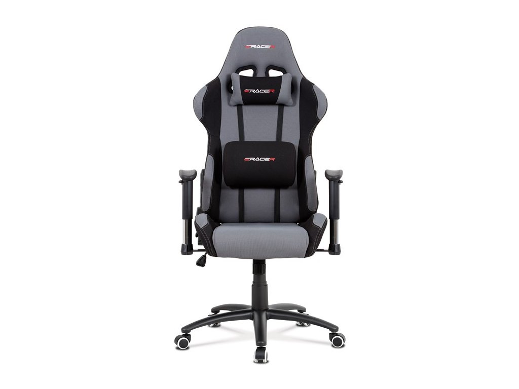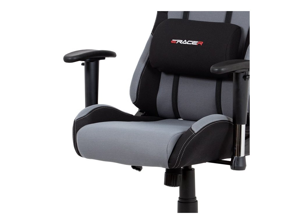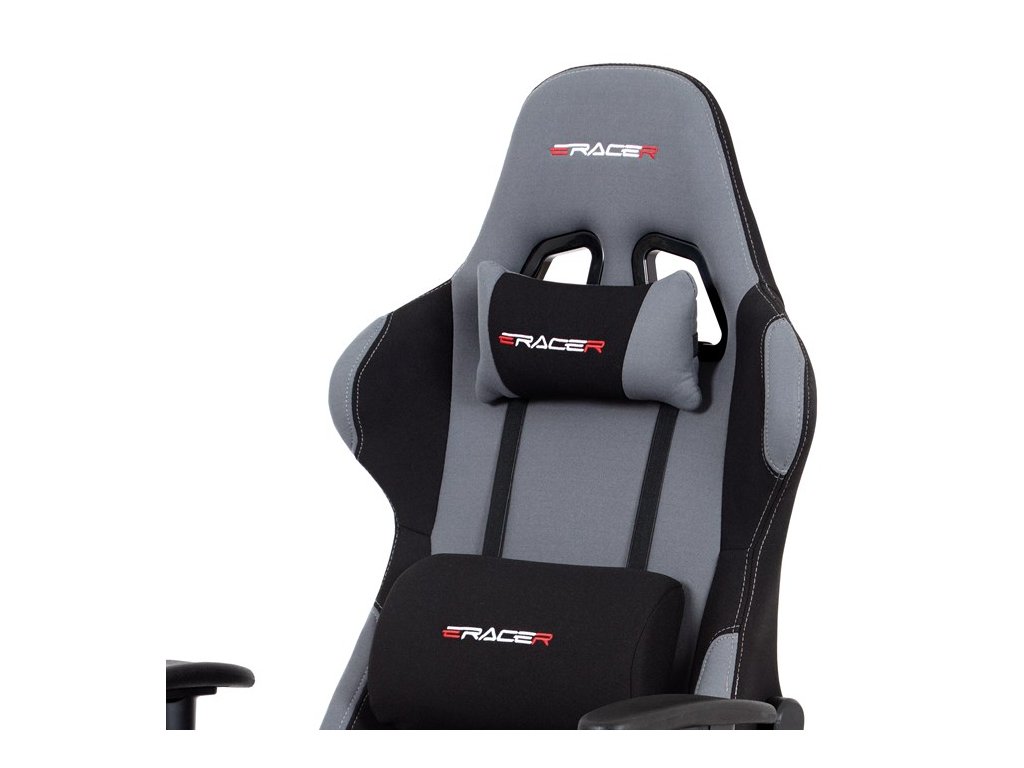Herní křeslo E-racer nabízí komfortní sezení díky potahu z kvalitní šedé a černé látky, která je příjemná na dotek a snadno se udržuje. Robustní kovový kříž zajišťuje stabilitu a dlouhou životnost, zatímco houpací mechanismus umožňuje plynulé nastavení náklonu sedáku a opěradla v rozsahu 90° až 180°, což podporuje ergonomické polohování během hraní i odpočinku. Výškově nastavitelné jednosměrné područky 1D přispívají k individuálnímu přizpůsobení a pohodlí uživatele. Celková konstrukce je navržena tak, aby poskytovala pevnou oporu zad i paží, což ocení zejména nároční hráči. Nosnost a přesné rozměry jsou optimalizovány pro běžné uživatele, kteří hledají kombinaci funkčnosti a stylového designu.