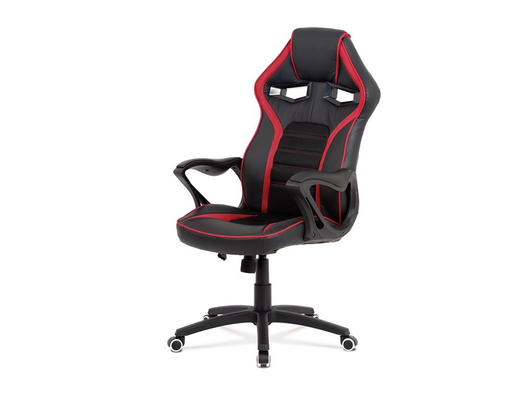 Herní židle, houpací mechanismus, černá ekokůže, KA-G406 RED