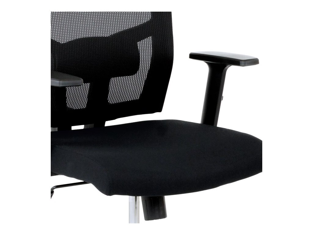 Kancelářská židle KA-B1012 BK je vybavena černým síťovaným opěradlem, které zajišťuje dostatečnou ventilaci během sezení. Sedák je potažený černou látkou, která je příjemná na dotek a snadno se udržuje. Židle disponuje houpacím mechanismem umožňujícím plynulé naklápění s možností aretace v základní poloze, což přispívá k ergonomickému posedu. Bederní opěrka je výškově nastavitelná, čímž podporuje správné držení zad. Područky jsou 1D nastavitelné v jedné ose a kříž je vyroben z pevného plastu s kolečky vhodnými pro různé typy podlah. Výšková nastavitelnost židle umožňuje přizpůsobení individuálním potřebám uživatele.