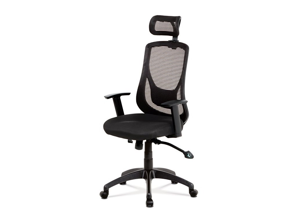 Kancelářská židle s označením KA-A186 BK nabízí ergonomické sezení díky synchronnímu mechanismu, který umožňuje plynulé naklápění opěradla v závislosti na pohybu těla. Černý prodyšný opěrák z kvalitní síťoviny zajišťuje optimální cirkulaci vzduchu a je doplněn o výškově nastavitelnou opěrku hlavy pro lepší podporu krční páteře. Pevná bederní opěrka přispívá k udržení správného držení těla během dlouhých pracovních hodin. Sedák je potažen černou látkou a je vybaven jednosměrně nastavitelnými plastovými područi, které umožňují přizpůsobení výšky podle potřeby. Stabilní plastový kříž s pěti kolečky zajišťuje mobilitu a bezpečnost, přičemž židle disponuje také výškovým nastavením sedáku pro maximální komfort uživatele.