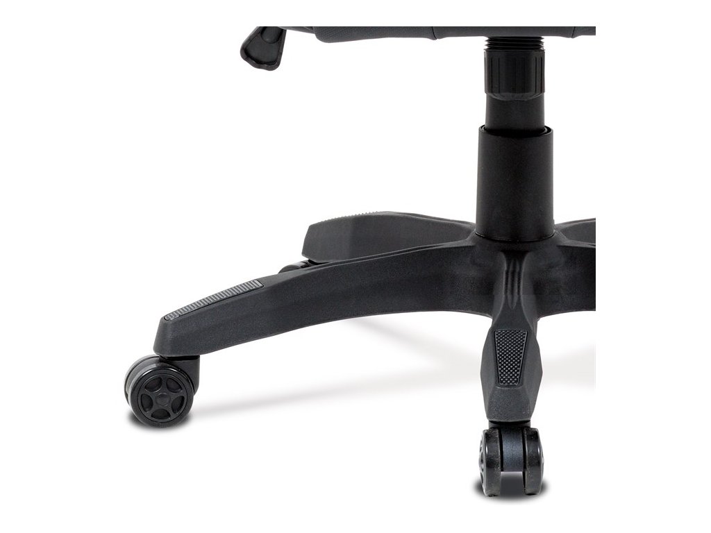 Kancelářská židle KA-F03 BK je vybavena houpacím mechanismem, který umožňuje plynulé naklápění opěradla v rozsahu od 90° a zajišťuje tak pohodlné sezení i při delší práci. Čalounění z černé ekokůže nabízí snadnou údržbu a kvalitní zpracování povrchu, který je příjemný na dotek a odolný vůči běžnému opotřebení. Plastový kříž zajišťuje stabilitu a lehkost celé židle, zatímco 2D područky umožňují nastavení výšky a horizontální polohy pro optimální podporu paží. Výškově nastavitelný sedák přispívá k ergonomii a přizpůsobení individuálním potřebám uživatele. Celková konstrukce je navržena pro dlouhou životnost a komfortní užívání v domácím i kancelářském prostředí.