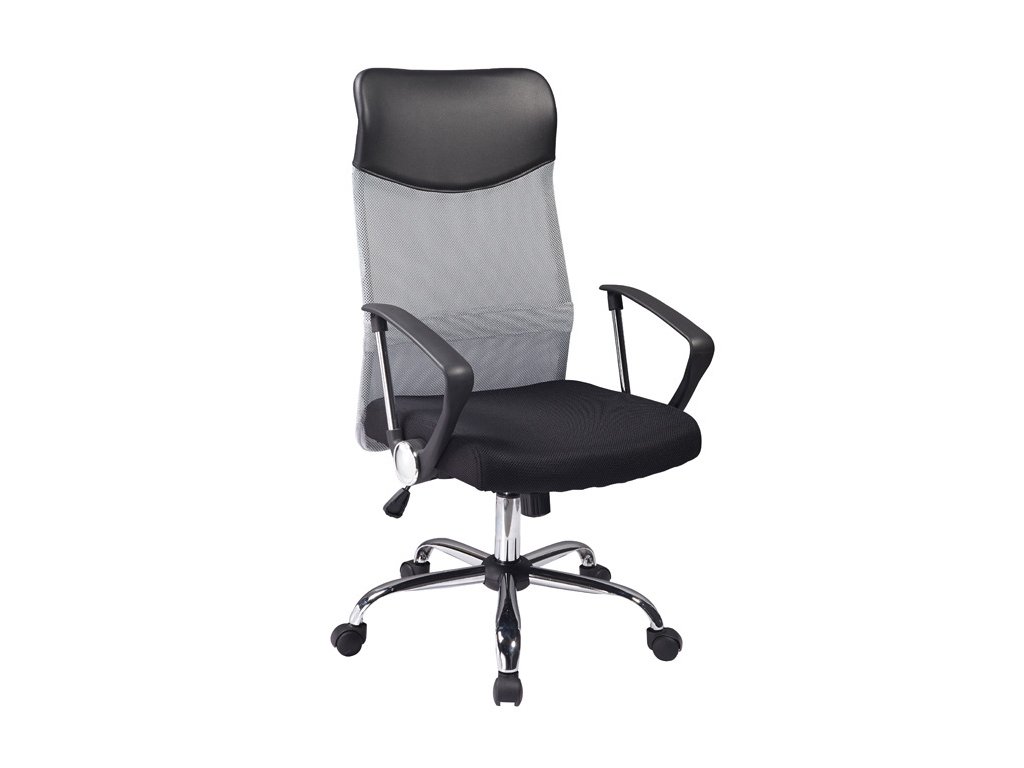 Otáčecí kancelářská židle, kovový podstavec je pochromovaný, čalounění je z látky a síťované membránové tkaniny v barevné kombinaci šedá/černá. Nastavitelná výška sedadla je v rozmezí 45 - 54 cm.Doplňkové parametry