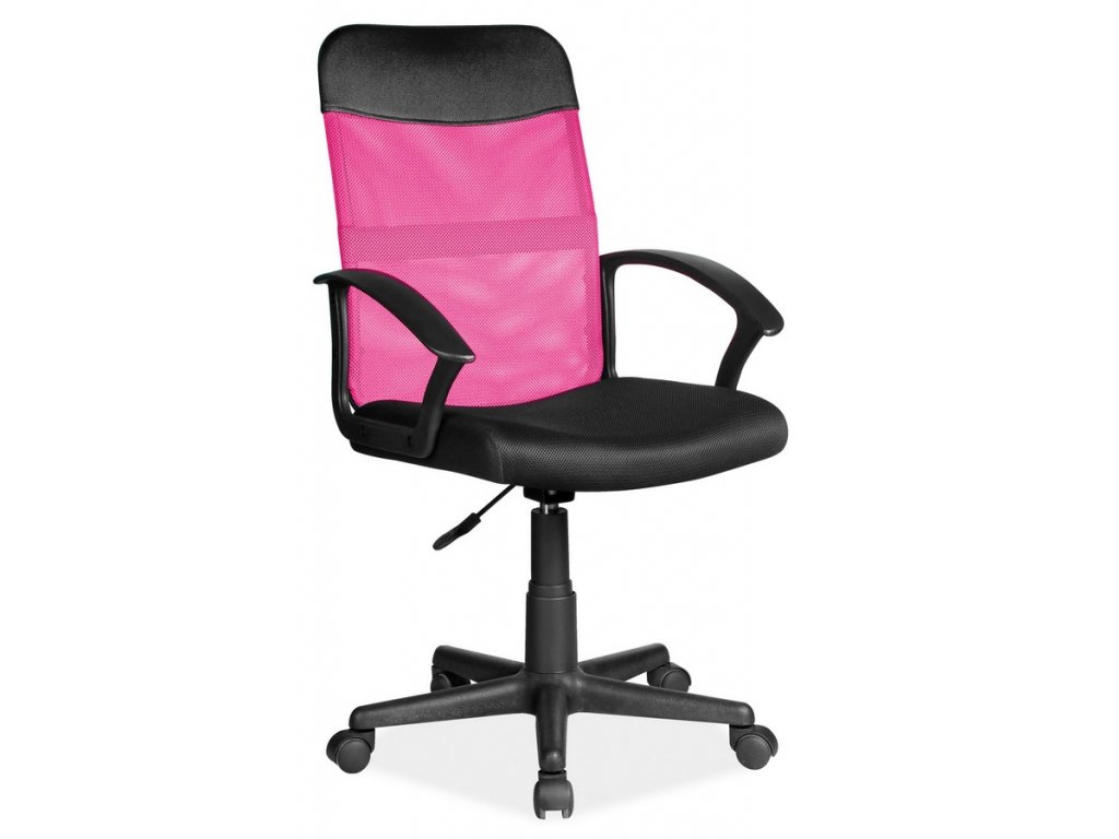 Otáčecí kancelářská židle, kovový podstavec je černý, čalounění je z látky a síťované membránové tkaniny v barevném provedení černá/růžová. Nastavitelná výška sedadla je v rozmezí 40 - 50 cm, celková výška 95 - 104 cm. Dodáváme v demontovaném stavu.Doplňkové parametry