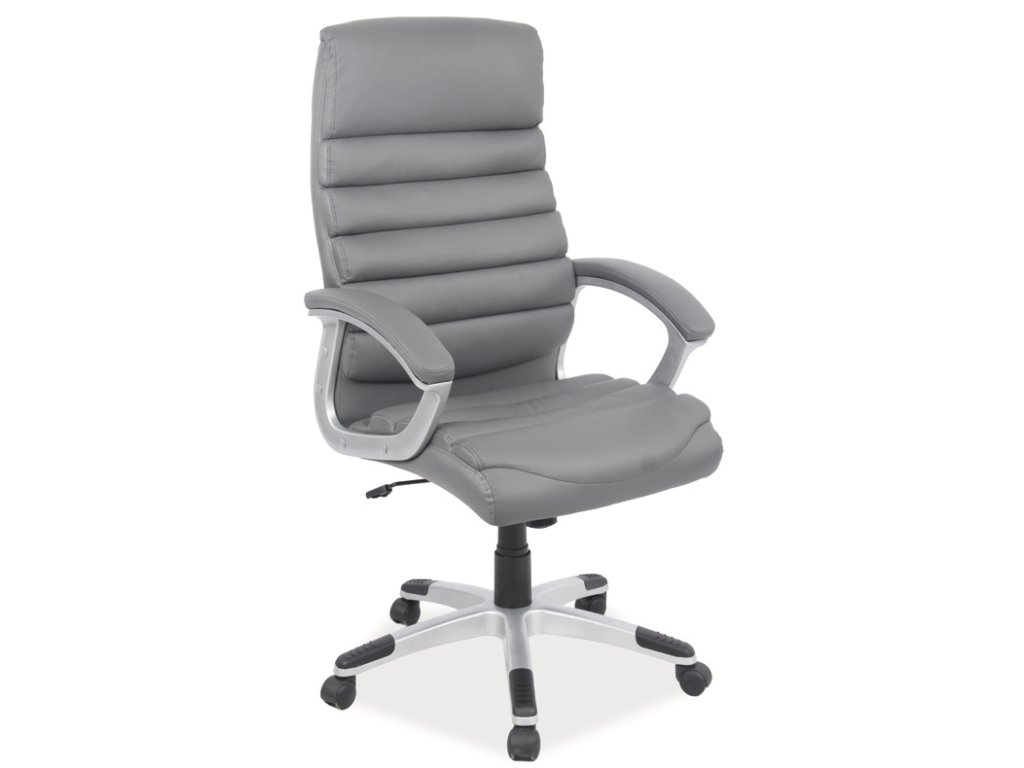 Moderní výškově nastavitelné kancelářské křeslo. Podstavec je z kovu, čalounění je vyrobené z ekokůže v šedé barvě. Výška sedadla je v rozmezí 46 - 56 cm, celková výška je 115 - 125 cm. Dodáváme v demontovaném stavu.Doplňkové parametry