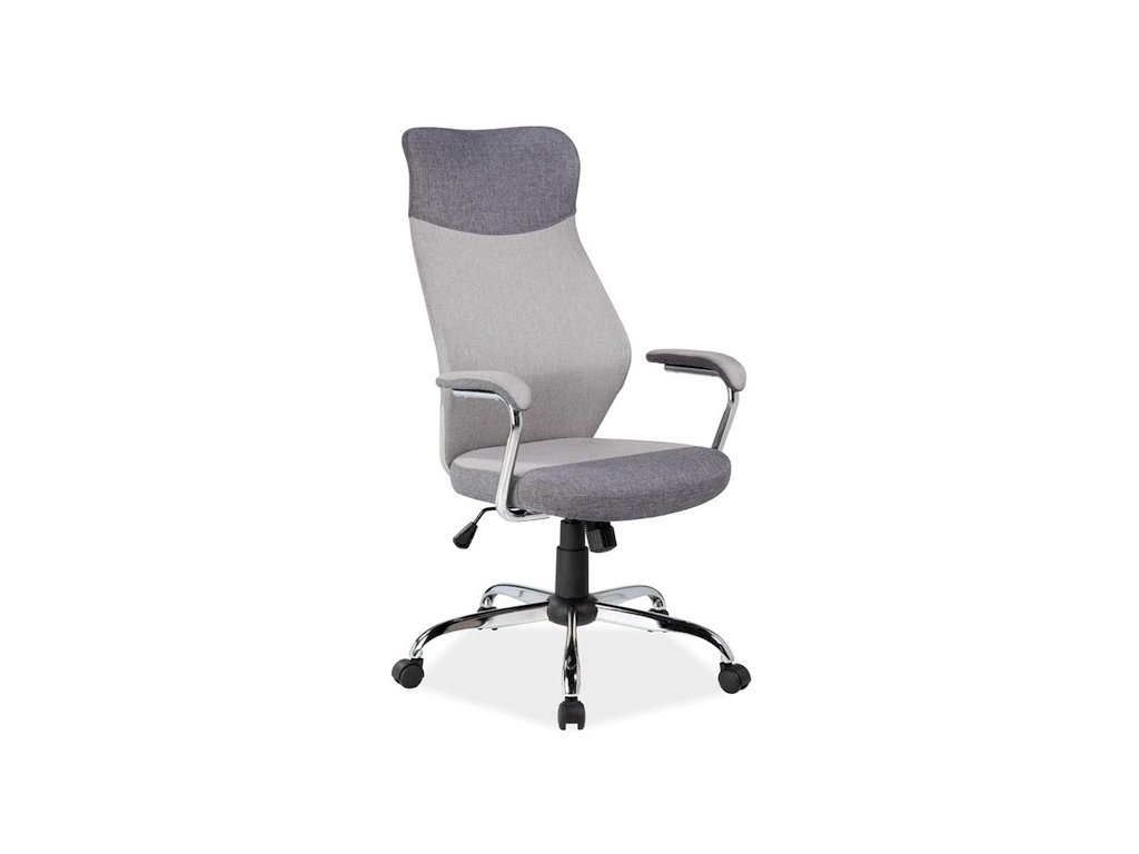 Moderní otáčecí kancelářské křeslo s možností nastavení výšky sedadla. Podstavec a opěrky jsou z kovu, čalounění je vyrobené z látky v barvě šedé. Výška sedadla je v rozmezí 48 - 58 cm, celková výška je 112 - 122 cm.Doplňkové parametry