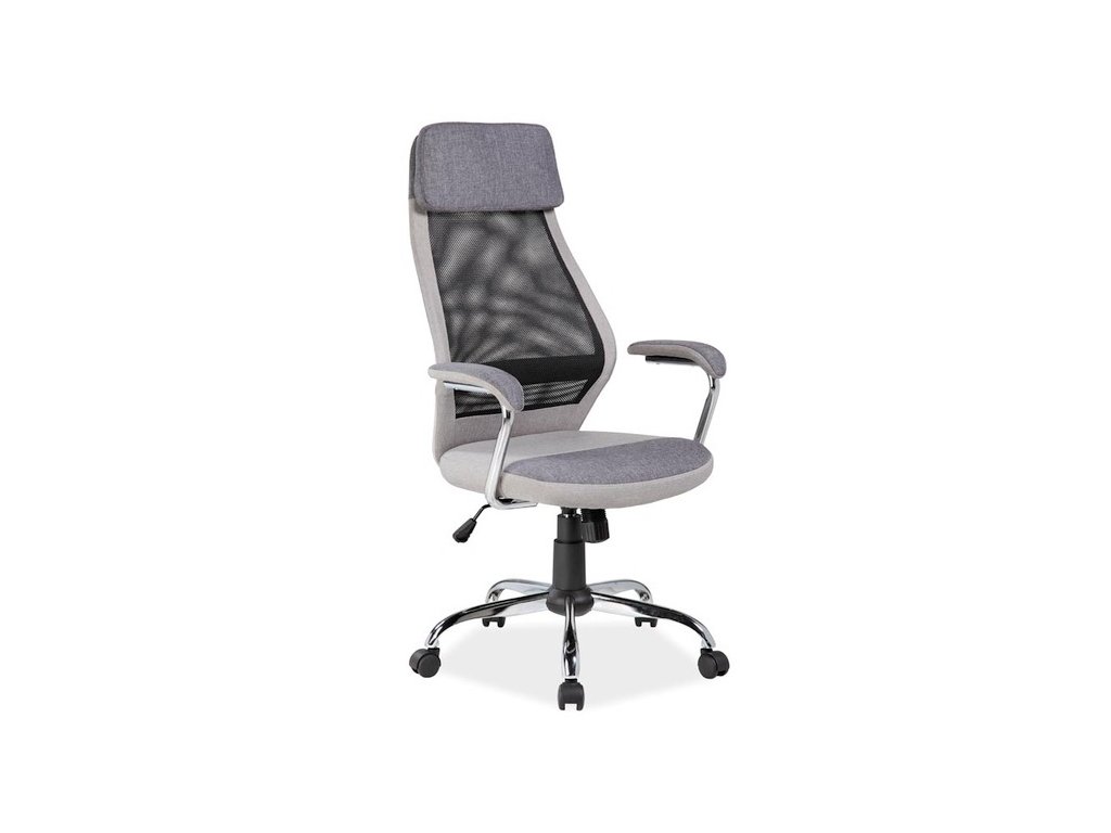 Moderní otáčecí kancelářské křeslo s polohovatelnou opěrkou a možností nastavení výšky sedadla. Podstavec a opěradla jsou z kovu, čalounění je vyrobené z membránové látky a síťoviny v šedé barvě. Výška sedadla je v rozmezí 47 - 57 cm, celková výška je 117 - 127 cm.Doplňkové parametry