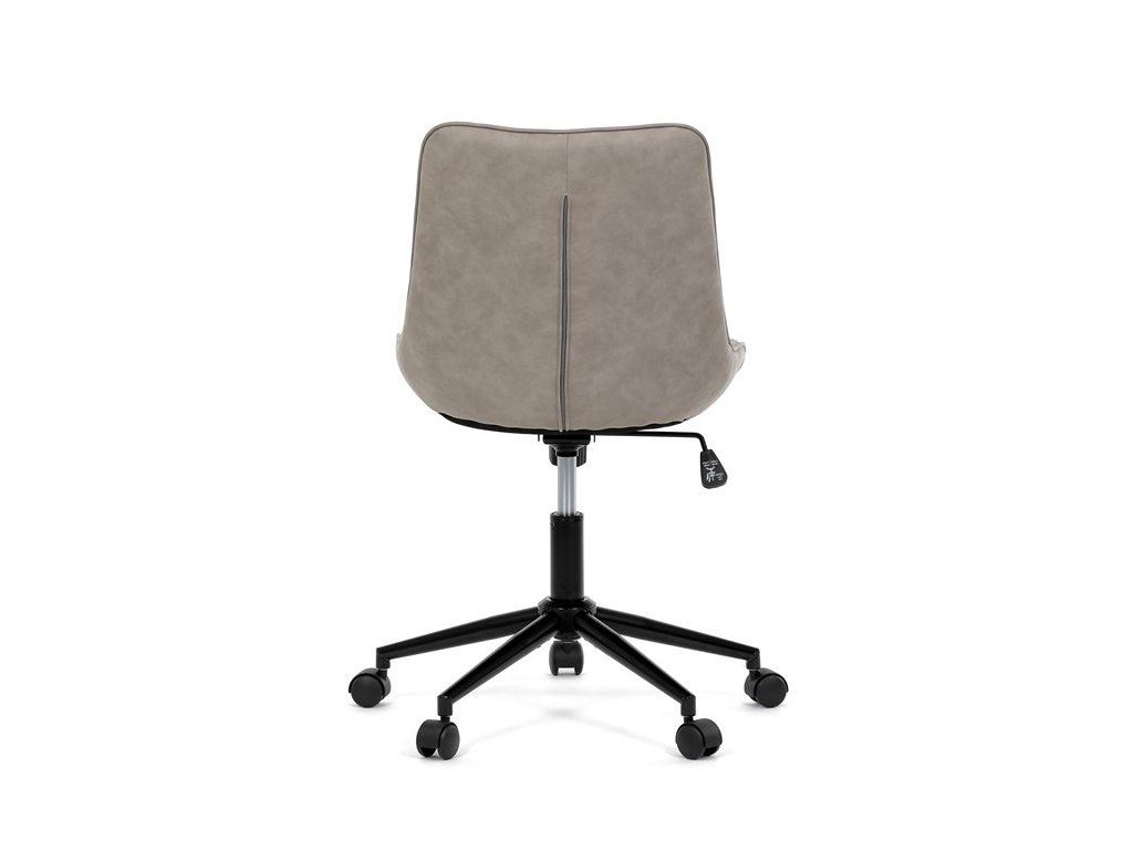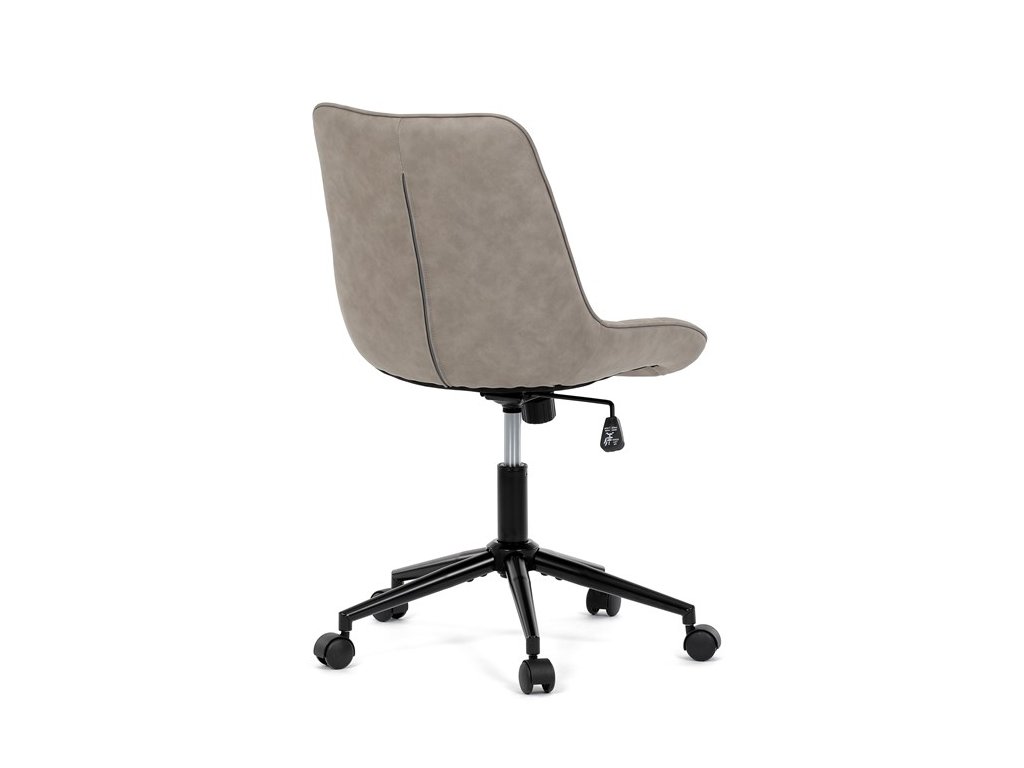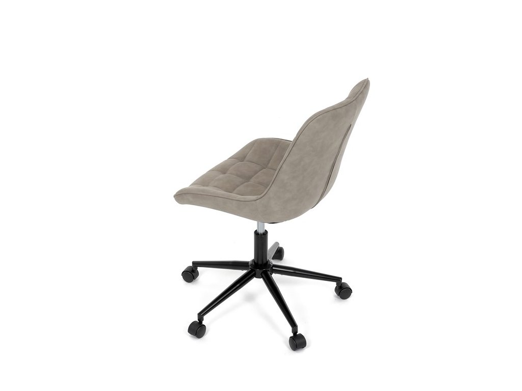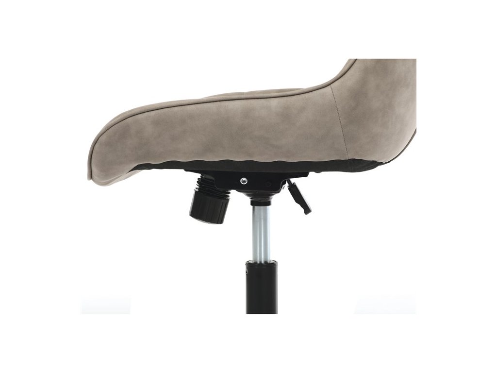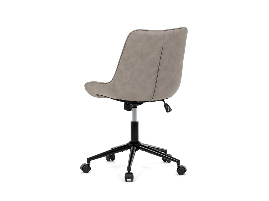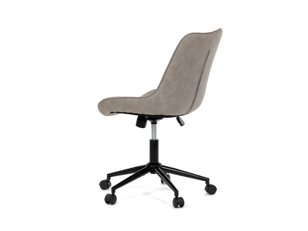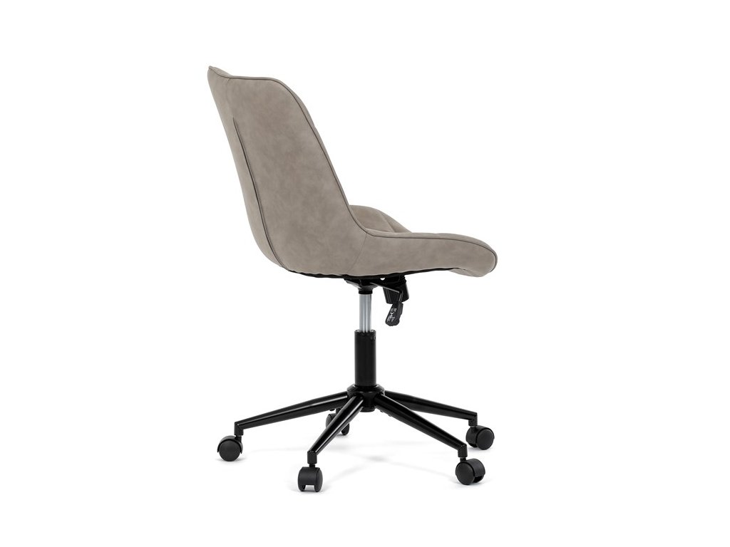 Kancelářská židle s béžovým čalouněním v dekoru broušené kůže nabízí kombinaci moderního vzhledu a komfortního sezení. Sedák i opěradlo jsou potažené prémiovou látkou, která je příjemná na dotek a snadno se udržuje. Černý kovový kříž zajišťuje stabilitu a pevnost celé židle, zatímco houpací mechanika umožňuje plynulé pohupování pro uvolnění během práce. Výškově nastavitelná sedací plocha umožňuje individuální přizpůsobení výšky sezení podle potřeby uživatele. Absence područek a opěrky hlavy dává židli minimalistický a vzdušný design vhodný do moderních pracovních prostor.