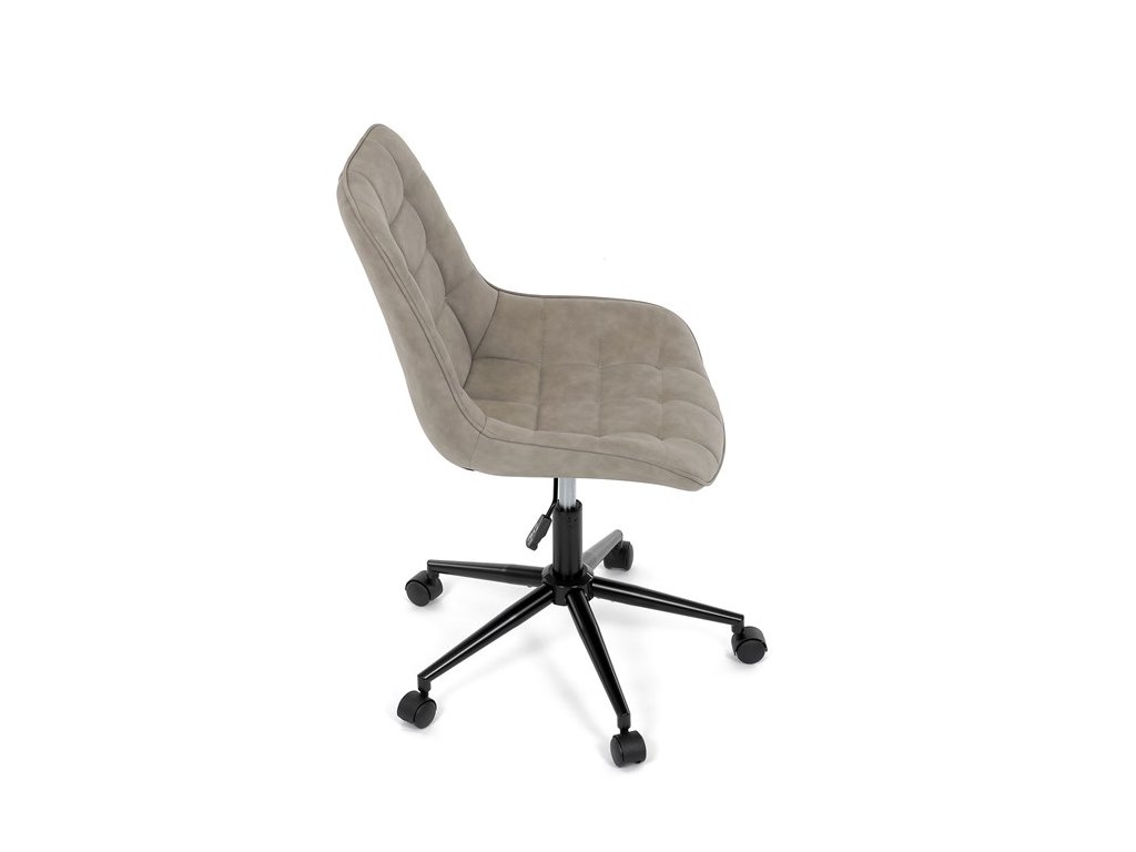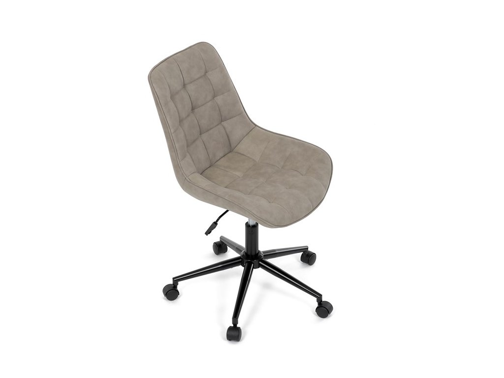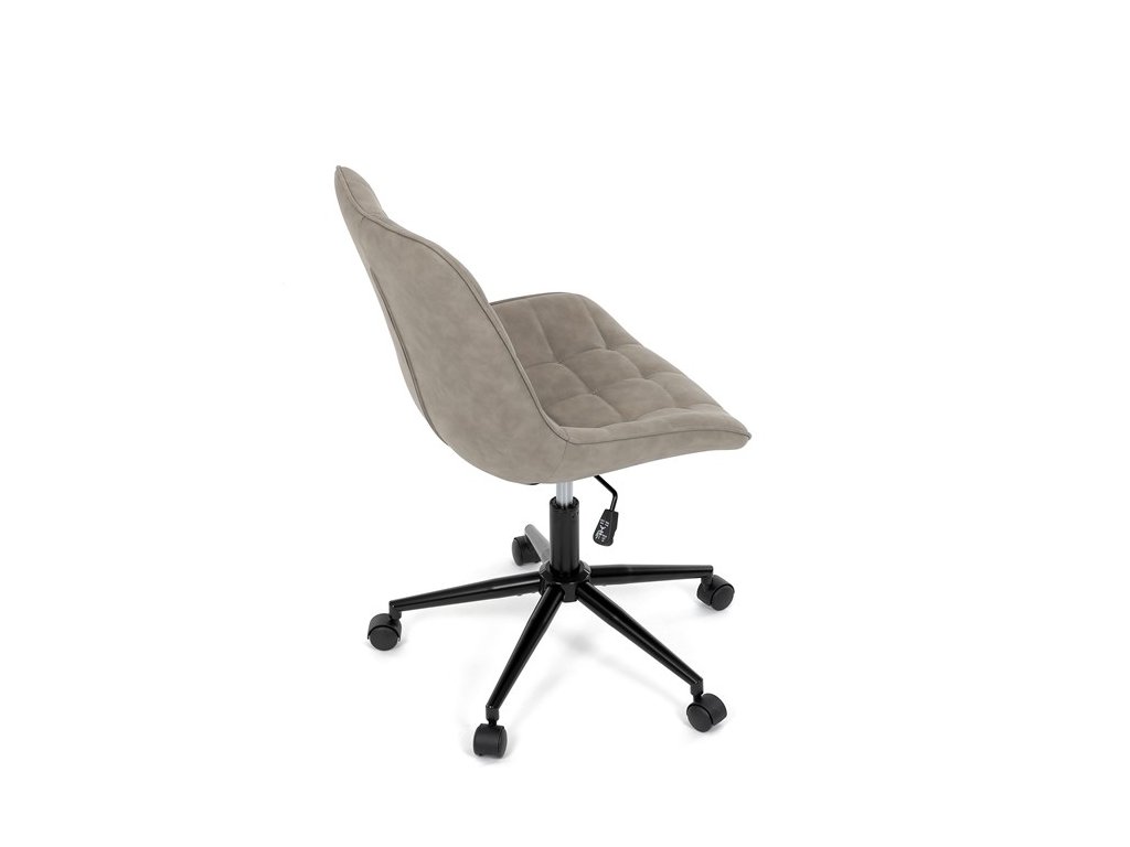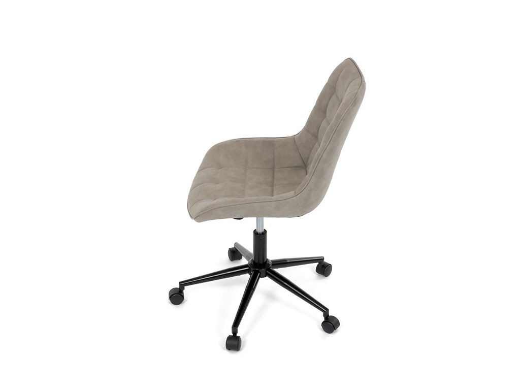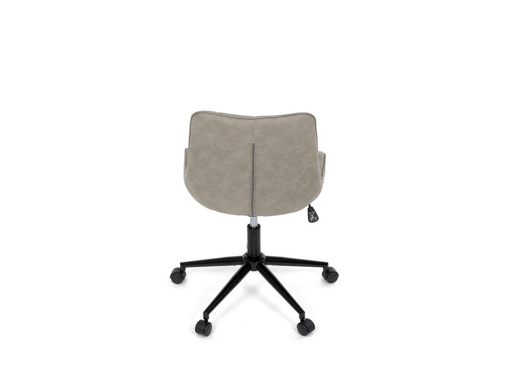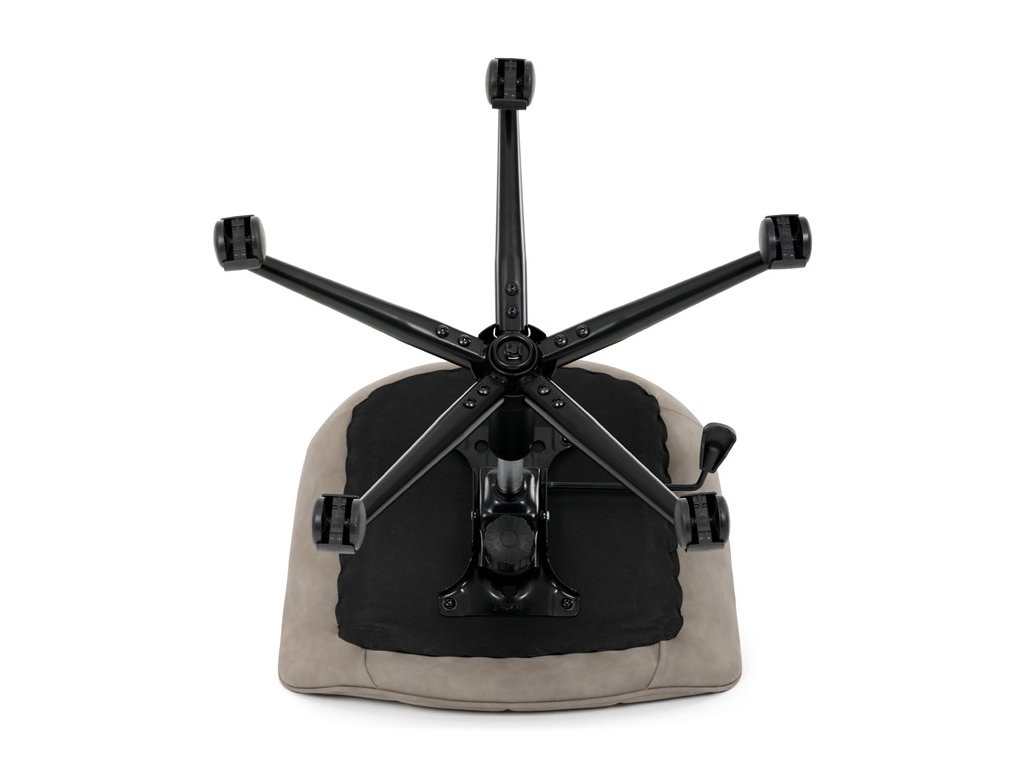 Kancelářská židle s béžovým čalouněním v dekoru broušené kůže nabízí kombinaci moderního vzhledu a komfortního sezení. Sedák i opěradlo jsou potažené prémiovou látkou, která je příjemná na dotek a snadno se udržuje. Černý kovový kříž zajišťuje stabilitu a pevnost celé židle, zatímco houpací mechanika umožňuje plynulé pohupování pro uvolnění během práce. Výškově nastavitelná sedací plocha umožňuje individuální přizpůsobení výšky sezení podle potřeby uživatele. Absence područek a opěrky hlavy dává židli minimalistický a vzdušný design vhodný do moderních pracovních prostor.