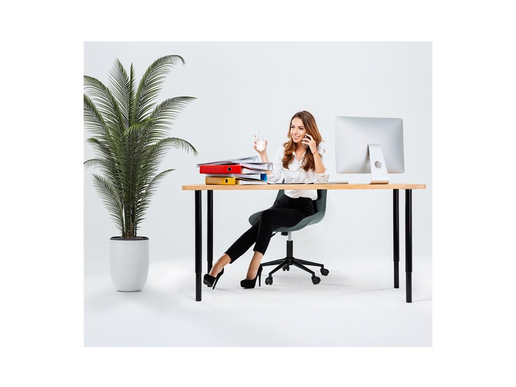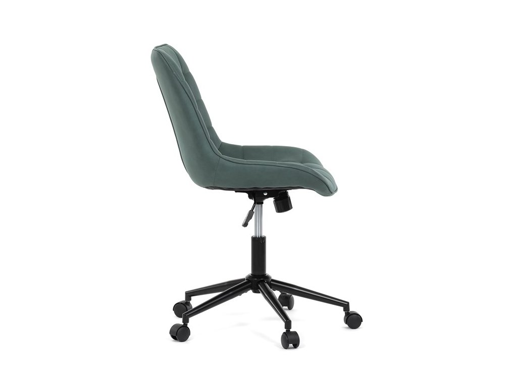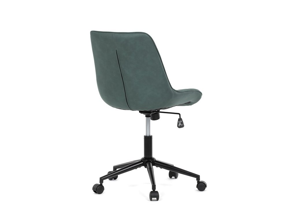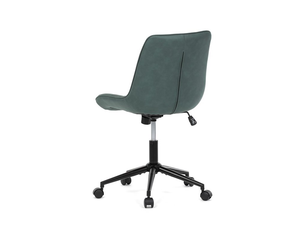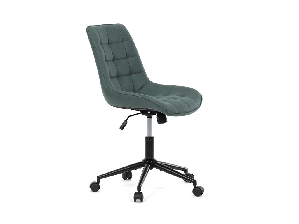 Kancelářská židle v zelené látce s dekorem broušené kůže nabízí komfortní sezení díky výškově nastavitelné sedací ploše a houpacímu mechanismu, který umožňuje mírné pohupování pro uvolnění během práce. Sedák i opěradlo jsou čalouněné prémiovou látkou, která kombinuje příjemný vzhled s kvalitním zpracováním. Pevný černý kovový kříž zajišťuje stabilitu a odolnost celé židle. Absence područek a bederní opěrky přispívá k jednoduchému a modernímu designu, který se snadno integruje do různých pracovních prostorů. Židle je navržena tak, aby podporovala ergonomii a dlouhodobý komfort při práci.