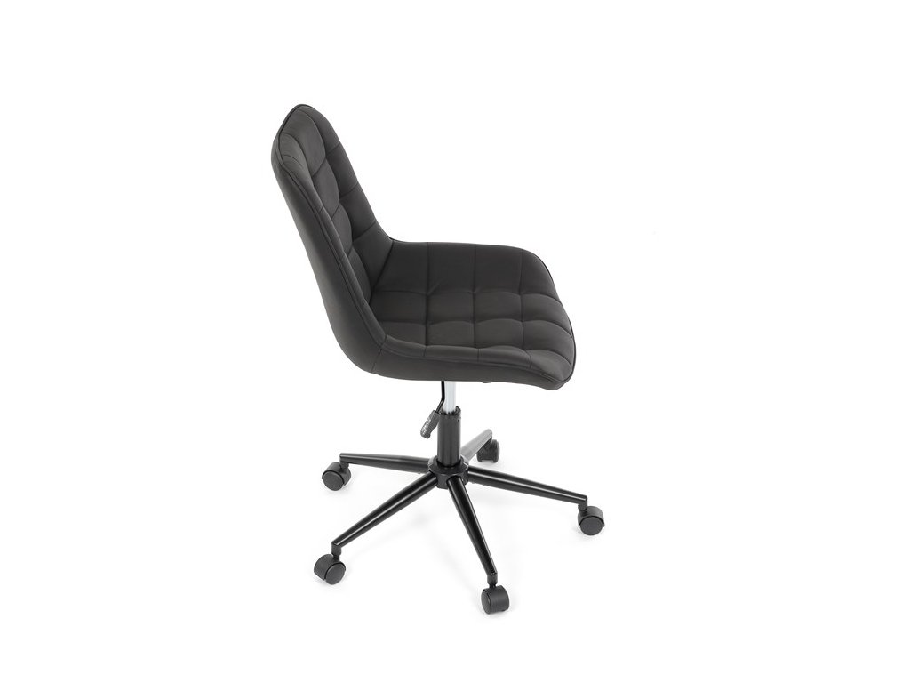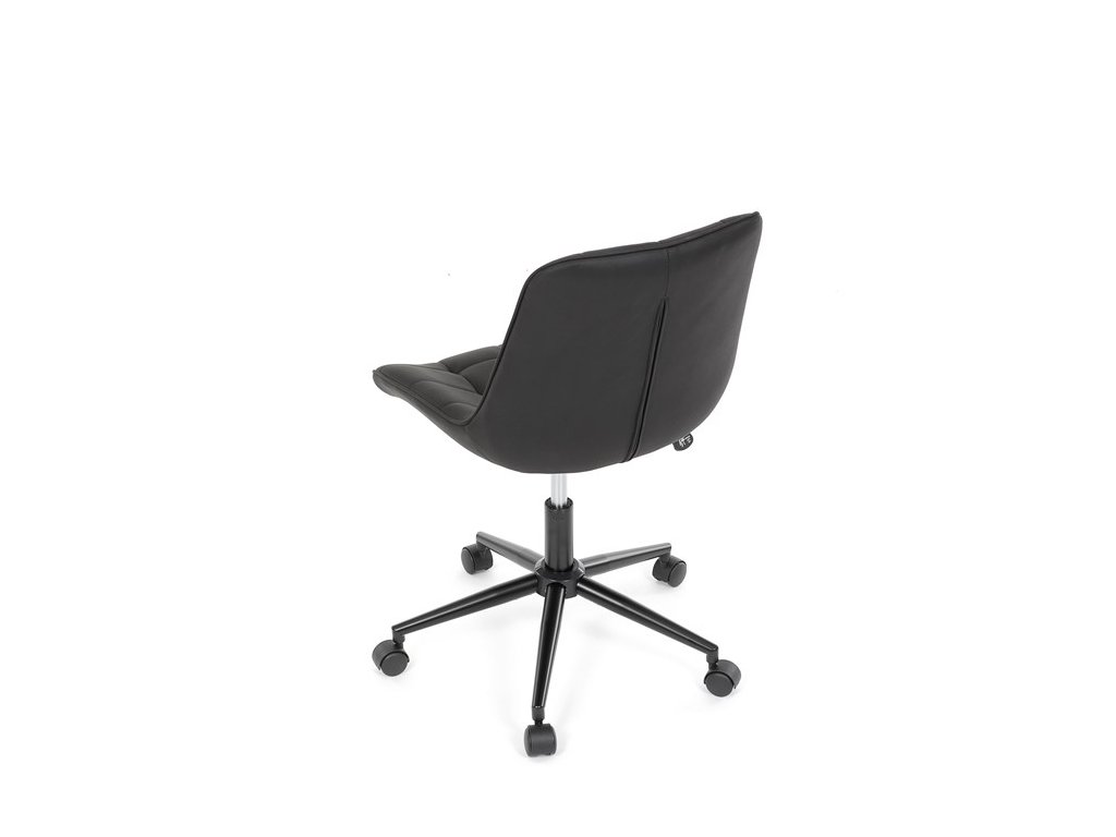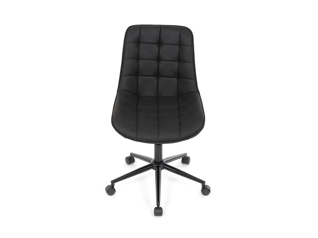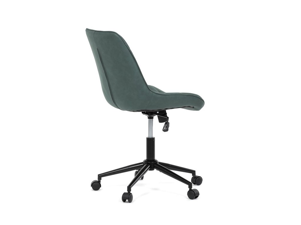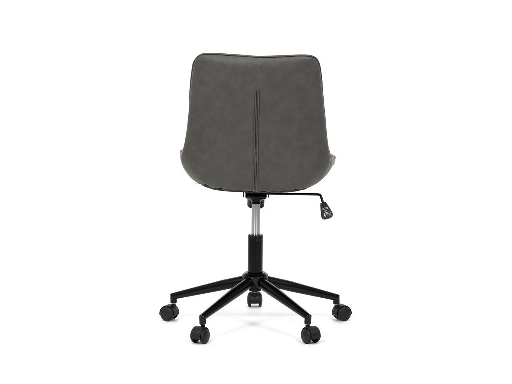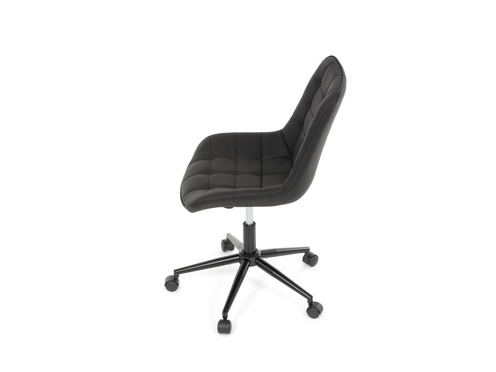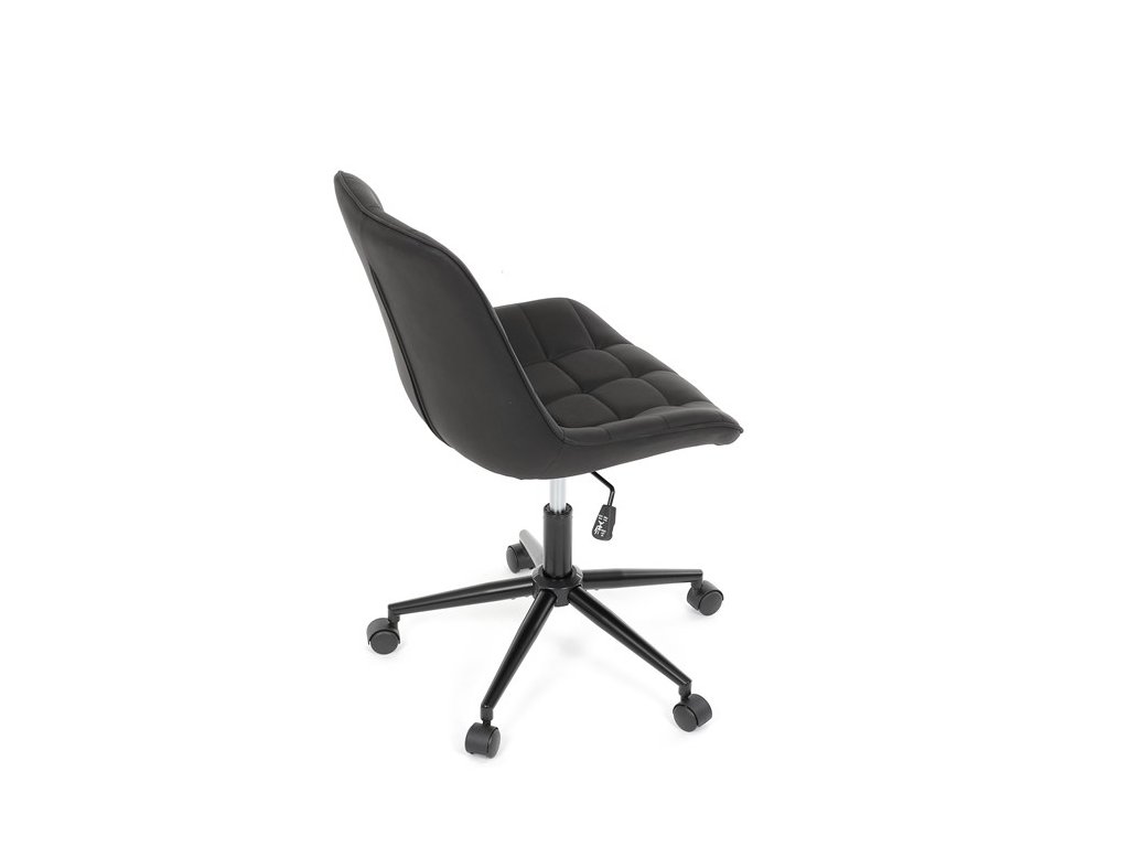 Kancelářská židle s černým potahem v dekoru broušené kůže nabízí moderní vzhled a komfortní sezení. Sedák i opěradlo jsou čalouněné kvalitní látkou, která je příjemná na dotek a snadno se udržuje. Pevný kovový kříž zajišťuje stabilitu a odolnost, zatímco houpací mechanika umožňuje plynulé naklápění pro uvolnění během práce. Výškově nastavitelná sedací plocha umožňuje přizpůsobení výšky podle individuálních potřeb uživatele. Absence područek a bederní opěrky podtrhuje minimalistický design vhodný do různých pracovních prostor.
