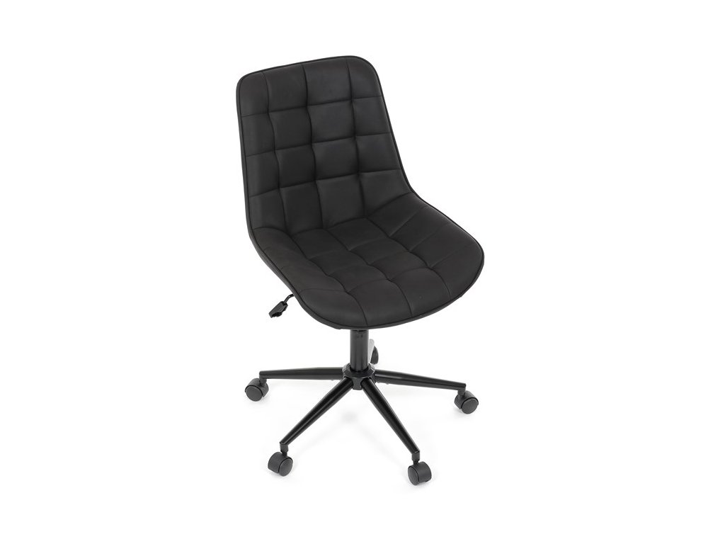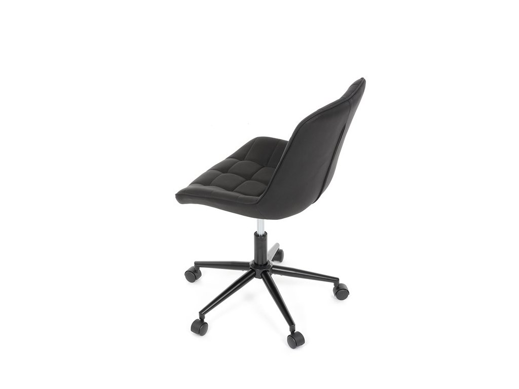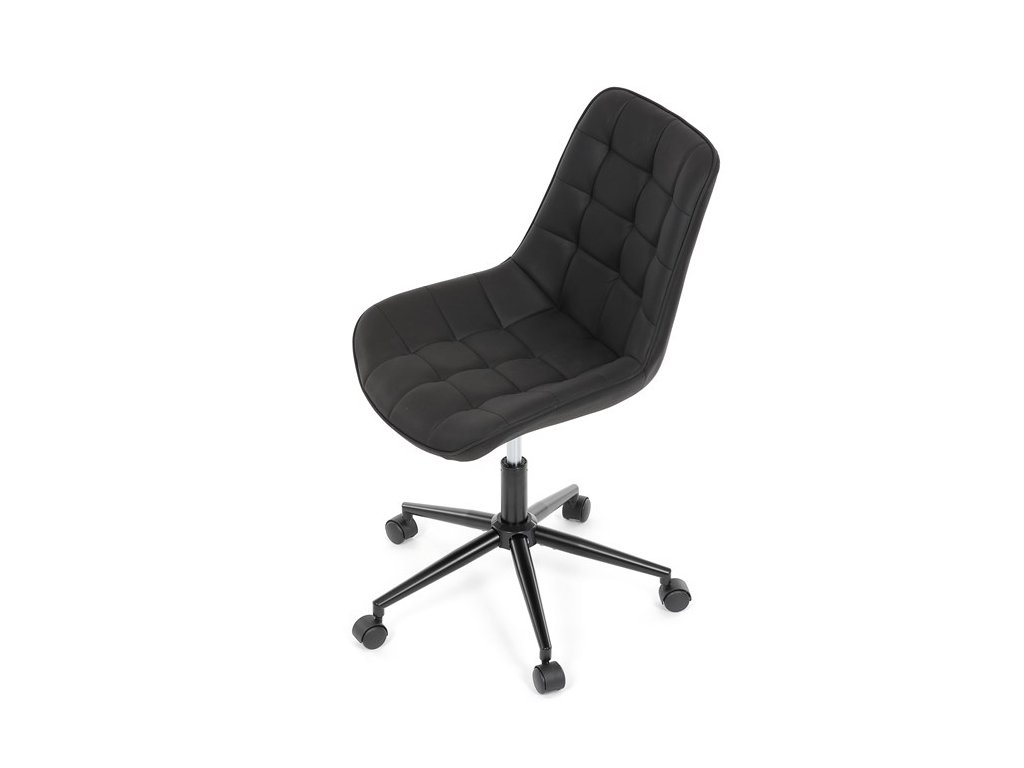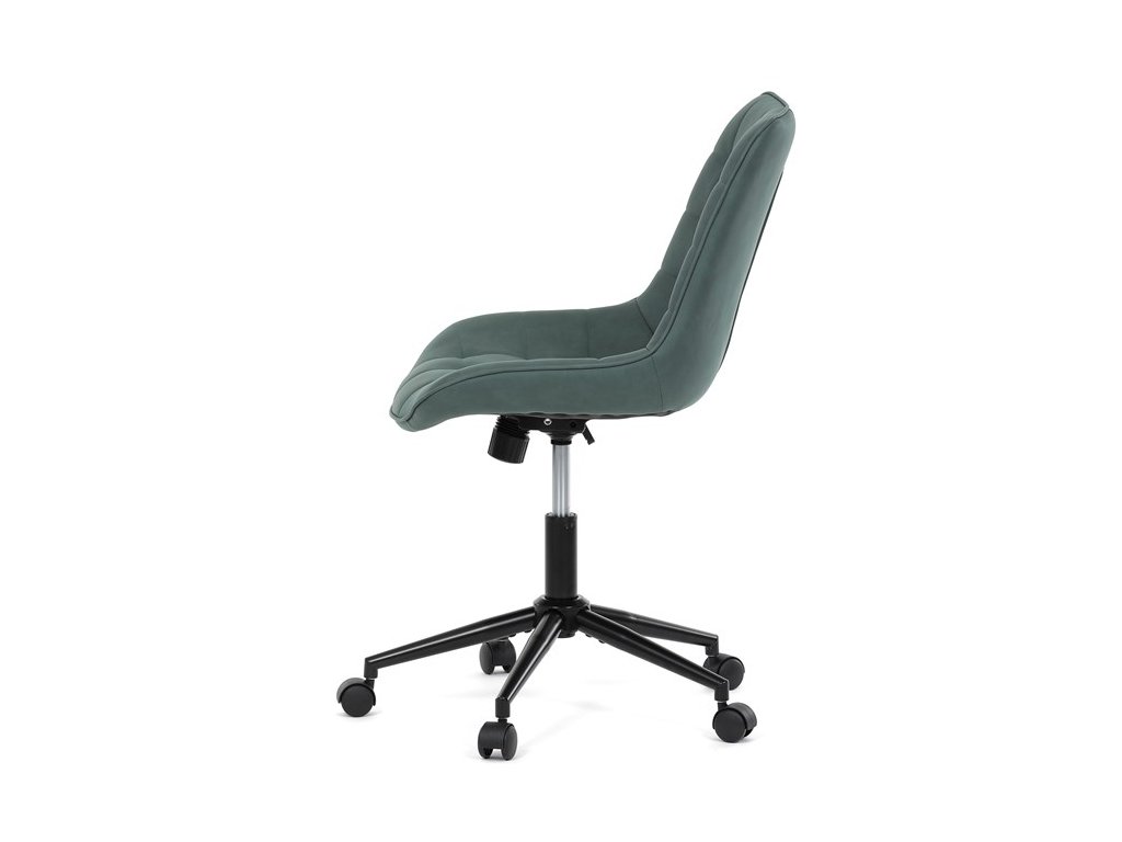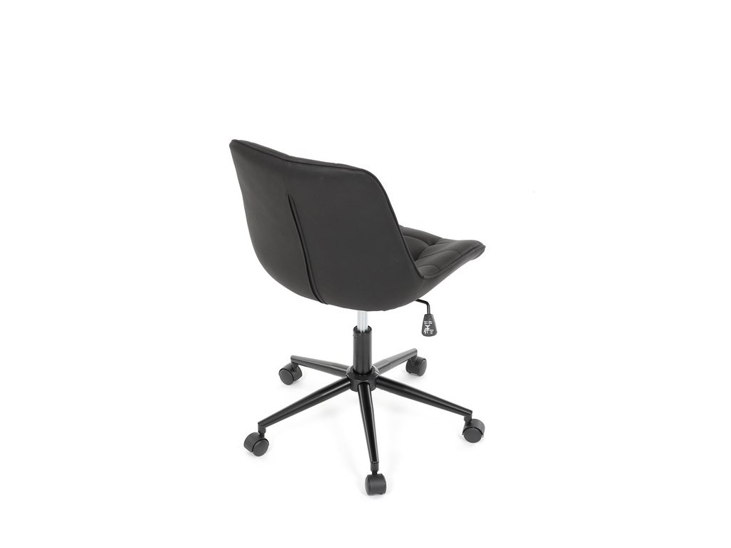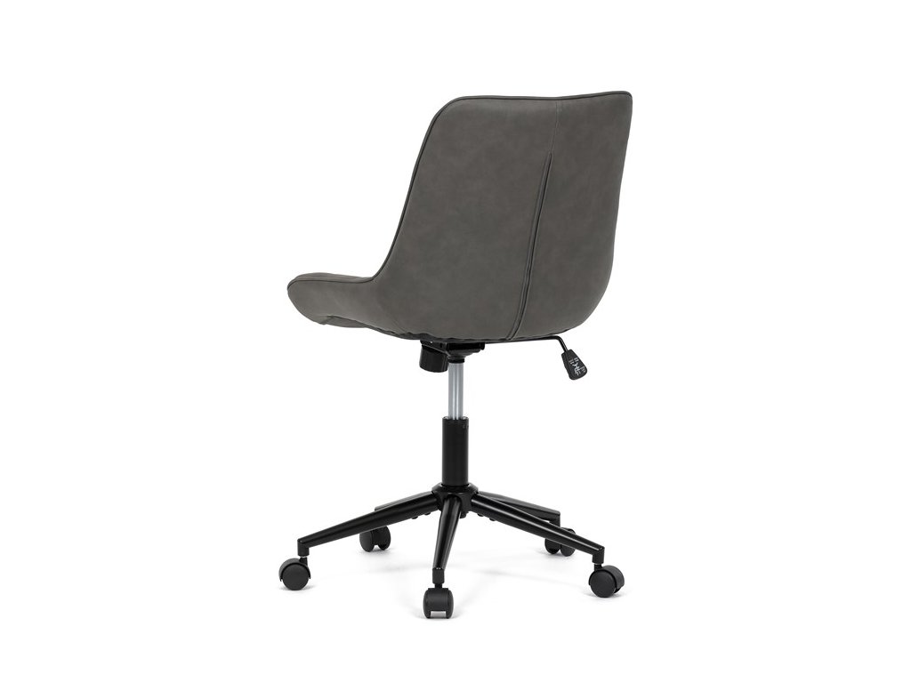 Kancelářská židle s černým potahem v dekoru broušené kůže nabízí moderní vzhled a komfortní sezení. Sedák i opěradlo jsou čalouněné kvalitní látkou, která je příjemná na dotek a snadno se udržuje. Pevný kovový kříž zajišťuje stabilitu a odolnost, zatímco houpací mechanika umožňuje plynulé naklápění pro uvolnění během práce. Výškově nastavitelná sedací plocha umožňuje přizpůsobení výšky podle individuálních potřeb uživatele. Absence područek a bederní opěrky podtrhuje minimalistický design vhodný do různých pracovních prostor.