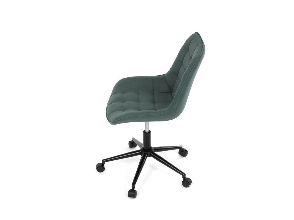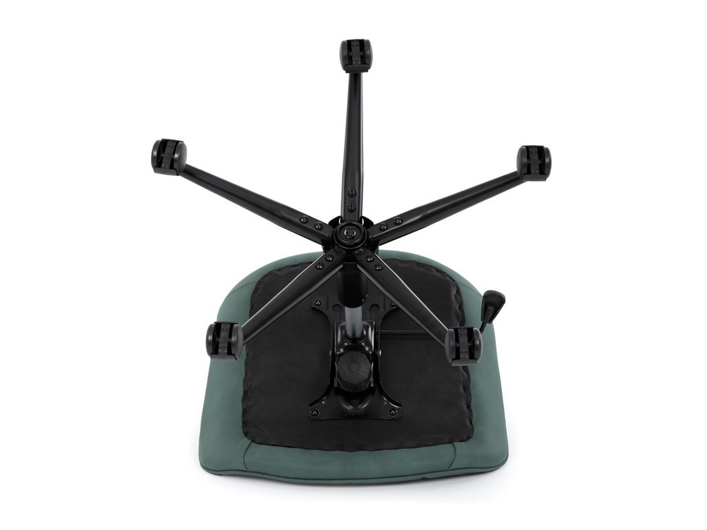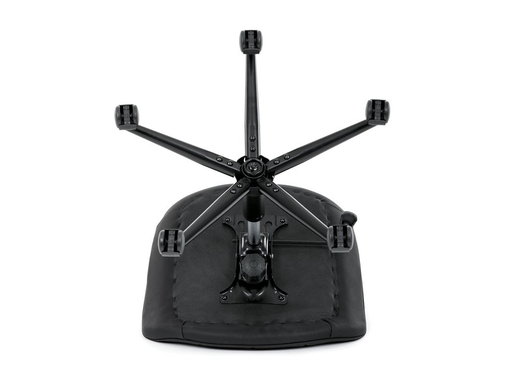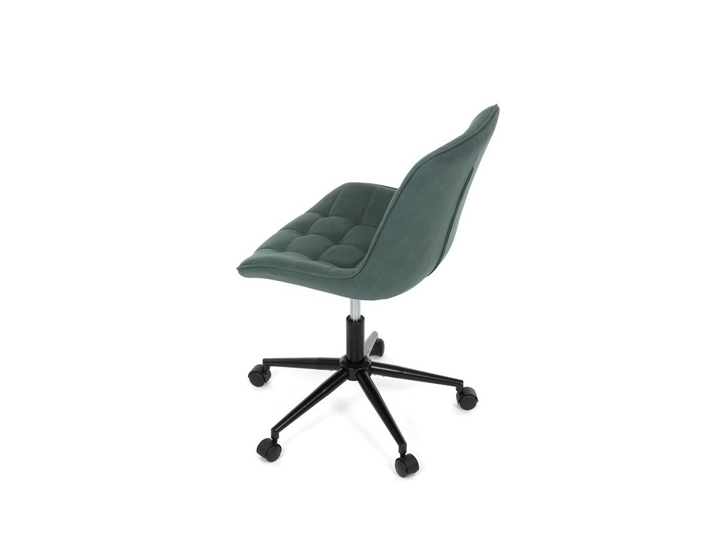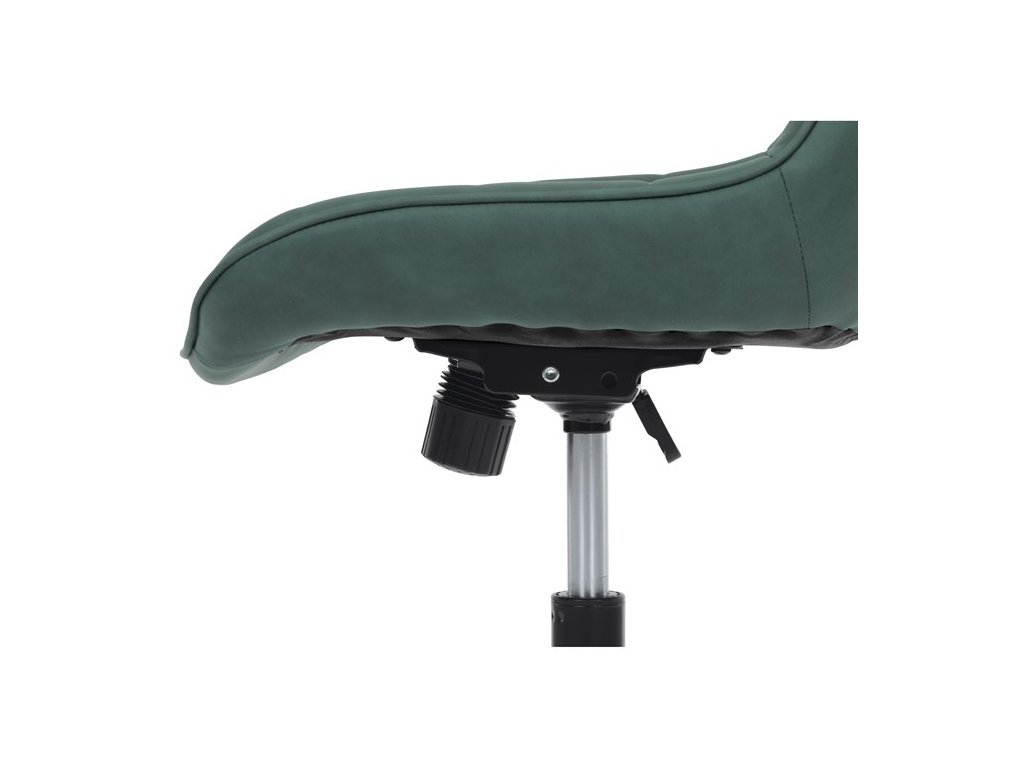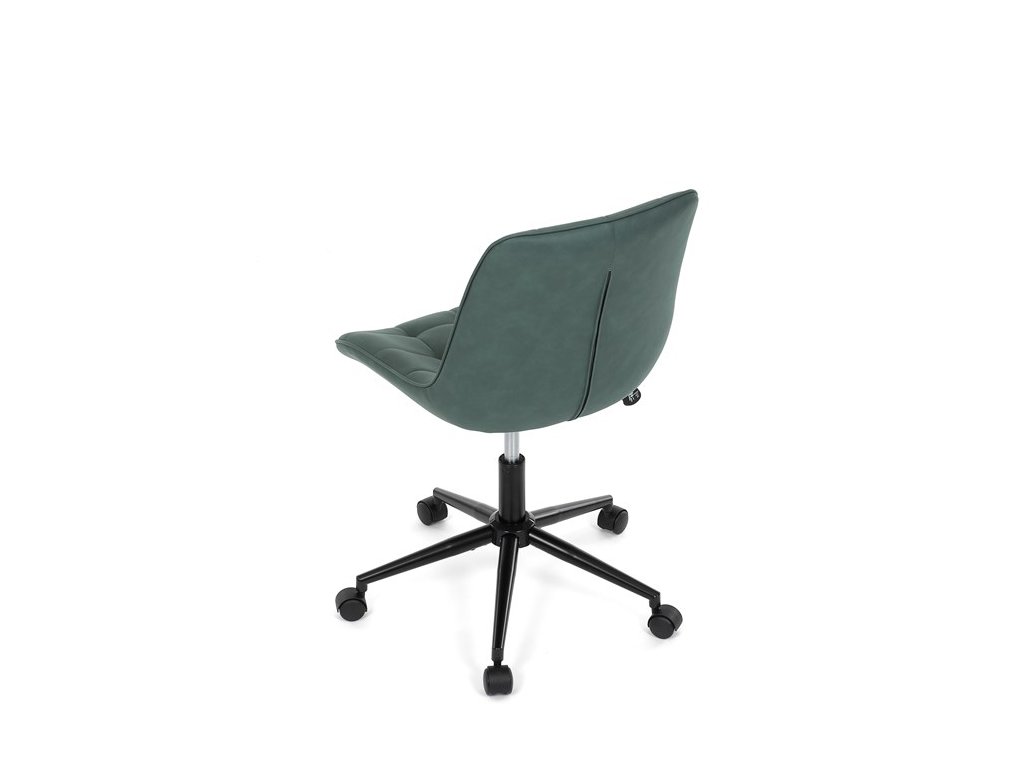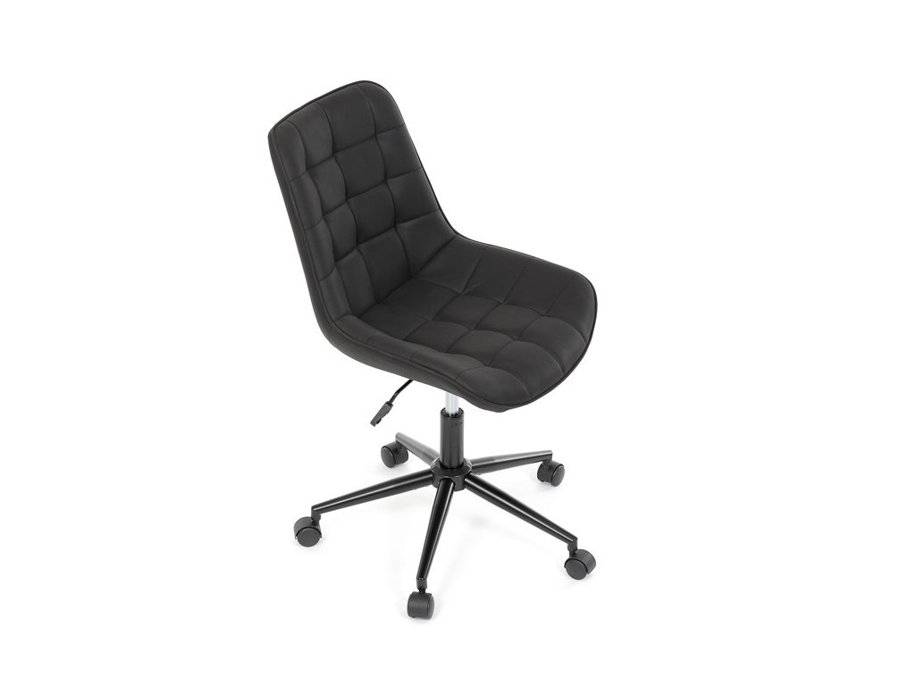 Kancelářská židle s černým potahem v dekoru broušené kůže nabízí moderní vzhled a komfortní sezení. Sedák i opěradlo jsou čalouněné kvalitní látkou, která je příjemná na dotek a snadno se udržuje. Pevný kovový kříž zajišťuje stabilitu a odolnost, zatímco houpací mechanika umožňuje plynulé naklápění pro uvolnění během práce. Výškově nastavitelná sedací plocha umožňuje přizpůsobení výšky podle individuálních potřeb uživatele. Absence područek a bederní opěrky podtrhuje minimalistický design vhodný do různých pracovních prostor.