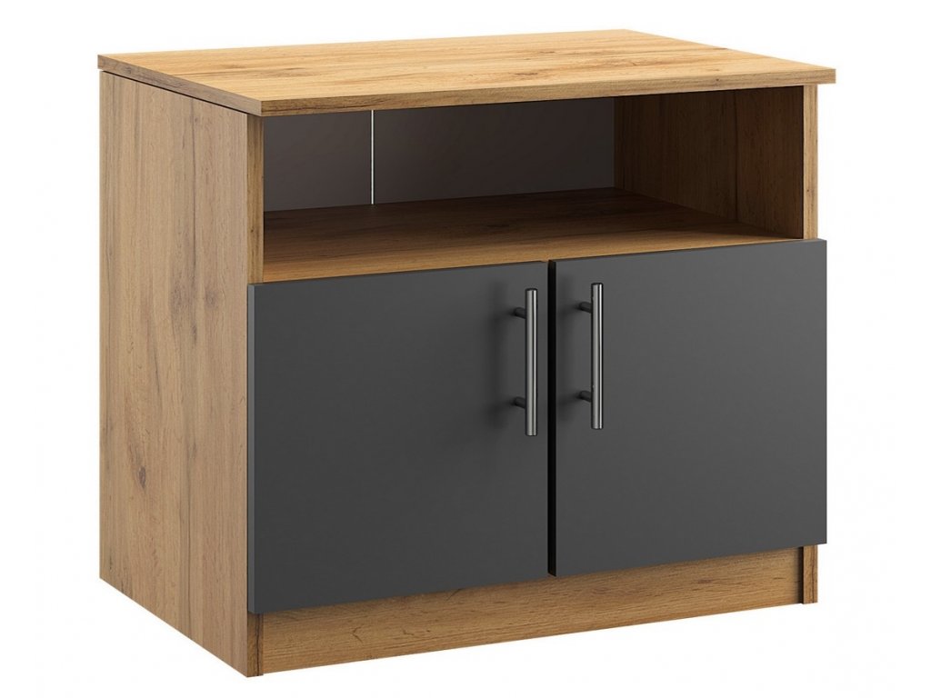 Komoda dvoudveřová je vyrobena z LTD desky odolné vůči poškrábání v barvě dub apalačský, dvířka jsou v barvě šedá. Dodáváme v demontovaném stavu.Doplňkové parametry