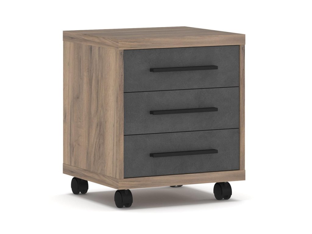 Kontejner na kolečkách se třemi zásuvkami v industriálním stylu je vyroben z kvalitní LTD v barevném provedení dub tabaco/matera. Úchyty jsou kovové. V naší nabídce najdete široký výběr komponentů této kolekce, které si můžete dokoupit. Dodáváme v demontovaném stavu.Doplňkové parametry