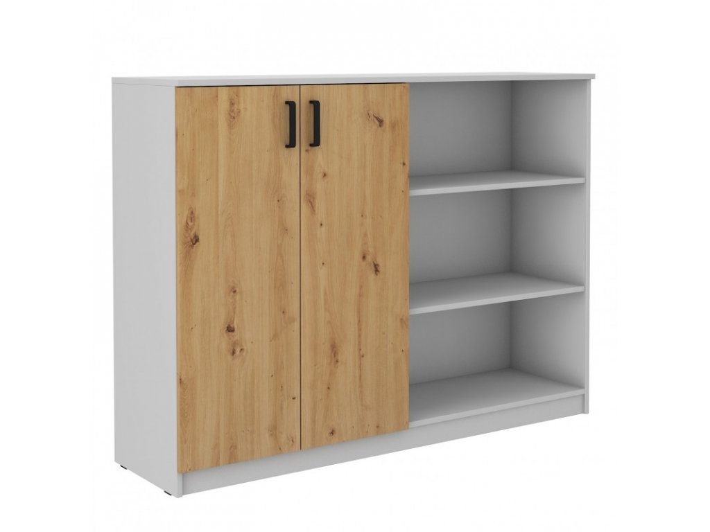Vysoká komoda Matylda 830 s dvířky a policemi je vyrobena z lamina v provedení dub artisan a světle šedá. Skříňka je velmi praktická a pojme vše potřebné. Je dodávána v demontu. Součástí balení je montážní návod včetně všech spojovacích prvků.