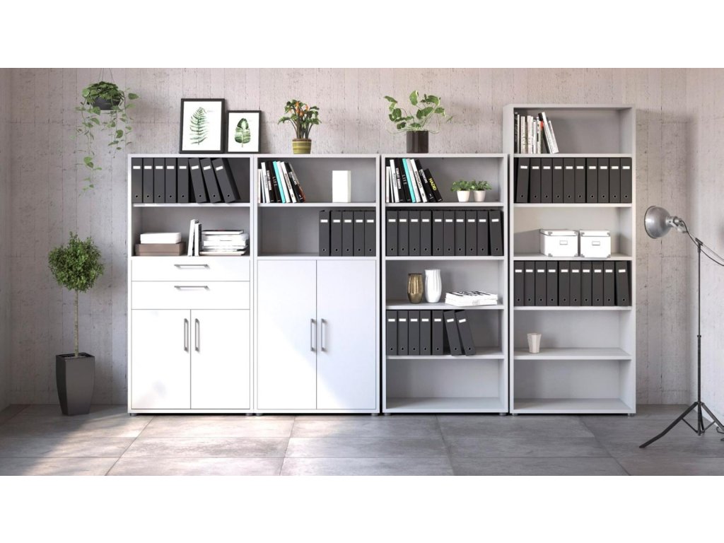 Nadčasová řada Office nabízí nekonečně mnoho úložných řešení pro vaši kancelář, domácí pracovnu nebo studentský pokoj. Knihovny a kancelářské skříňky je možné doplnit zásuvkami (s kovovými pojezdy) a dvířky v různých variantách, což vám umožňuje vytvořit si kancelář přesně podle vašich potřeb a přání. Sortiment této řady vyrobený z odolného a snadno udržovatelného lamima obsahuje také širokou škálu kancelářských stolů, pojízdných zásuvkových kontejnerů a variabilních prvků.