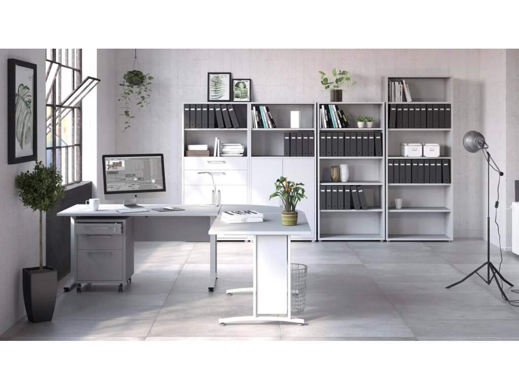 Nadčasová řada Office nabízí nekonečně mnoho úložných řešení pro vaši kancelář, domácí pracovnu nebo studentský pokoj. Knihovny a kancelářské skřínky je možné doplnit zásuvkami (s kovovými pojezdy) a dvířky v různých barvách, což vám umožní vytvořit si kancelář přesně podle vašich potřeb a přání. Sortiment této řady vyrobený z odolného a snadno udržovatelného lamima obsahuje také širokou škálu kancelářských stolů, pojízdných zásuvkových kontejnerů a variabilních prvků.