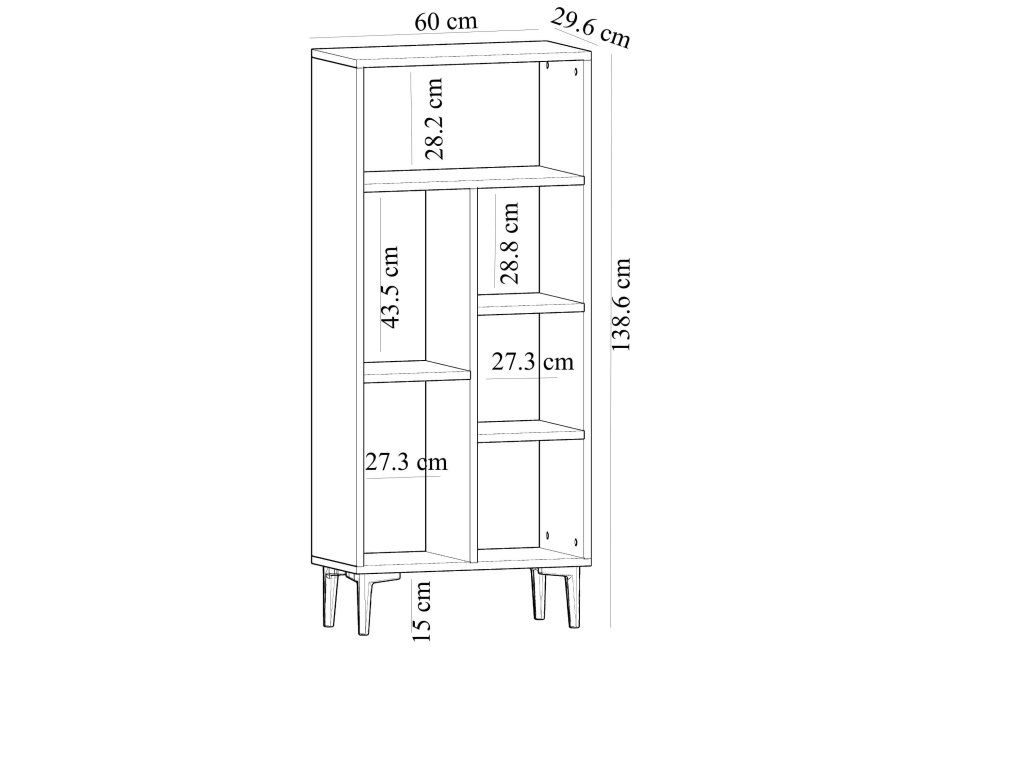 S rozměry 138,6 x 60 x 29,6 cm je knihovna navržena tak, aby efektivně využívala prostor, aniž by ho zbytečně zahlcovala. Vyrobena z kvalitního LTD materiálu, který zajišťuje dlouhou životnost a pevnost. Plastové nožičky dodávají stabilitu a chrání podlahu před poškrábáním.