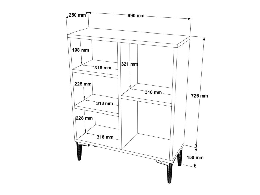- Rozměry: 87,6 x 69 x 25 cm - kompaktní velikost s dostatečným úložným prostorem díky 5 policím.