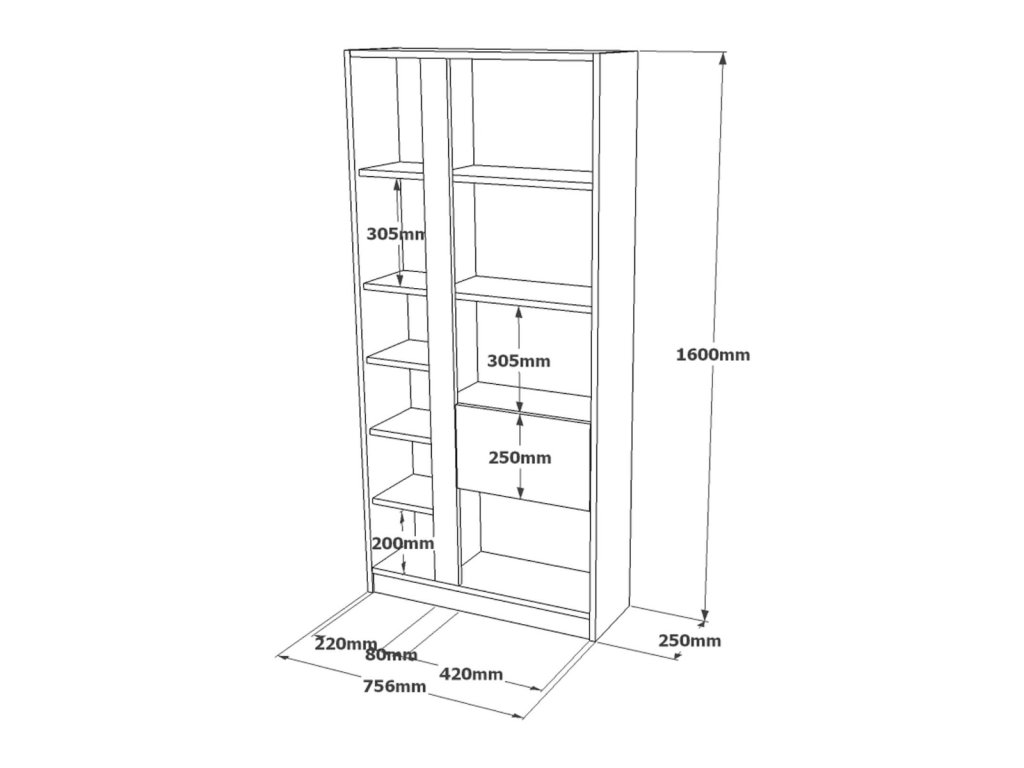 Moderní a designový regál ideální pro váš obývací pokoj. S jeho stylovým vzhledem a praktickým vybavením je skvělou volbou pro vystavení dekorativních předmětů, knih, váz či dalších oblíbených artefaktů. Tento regál je vyroben z kvalitního materiálu LTD 18 mm.