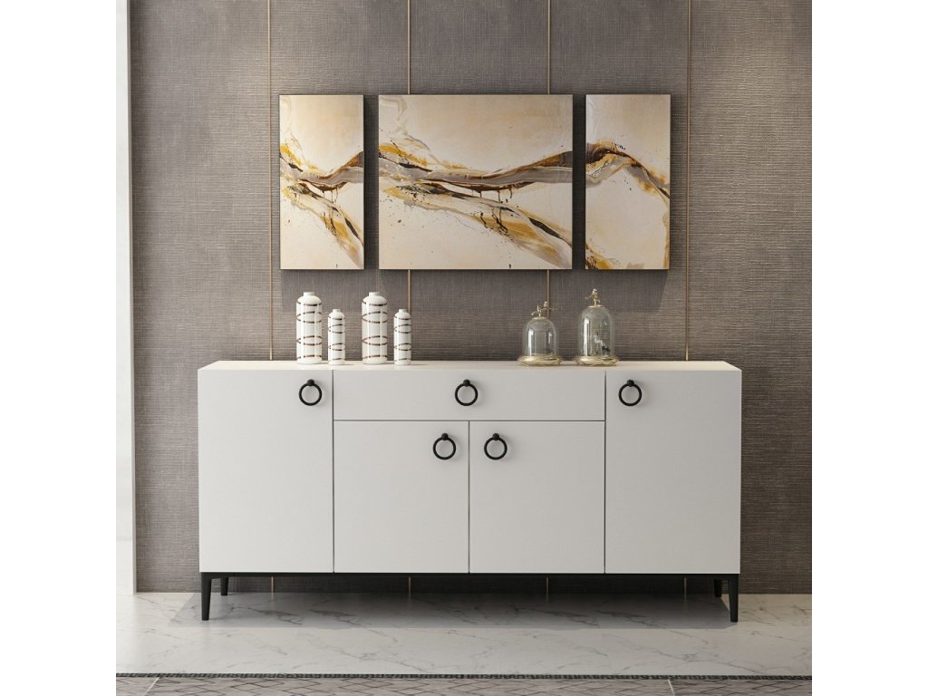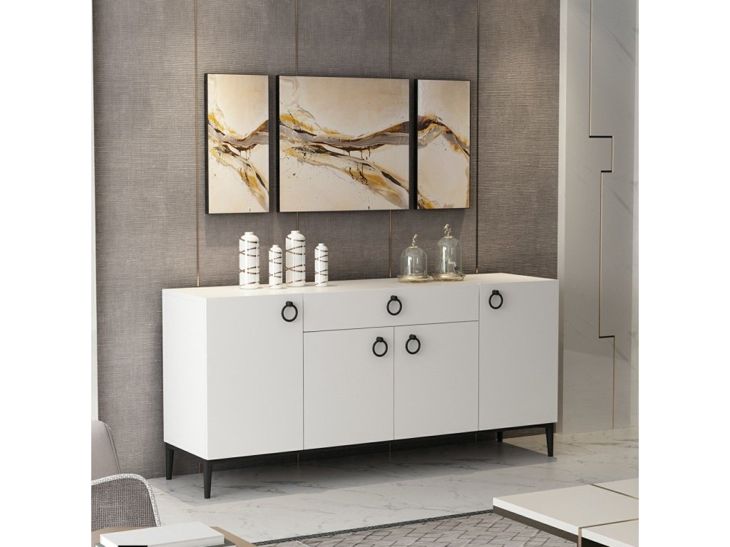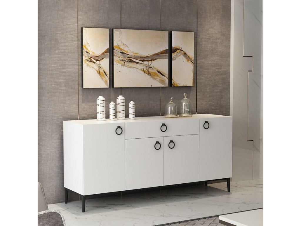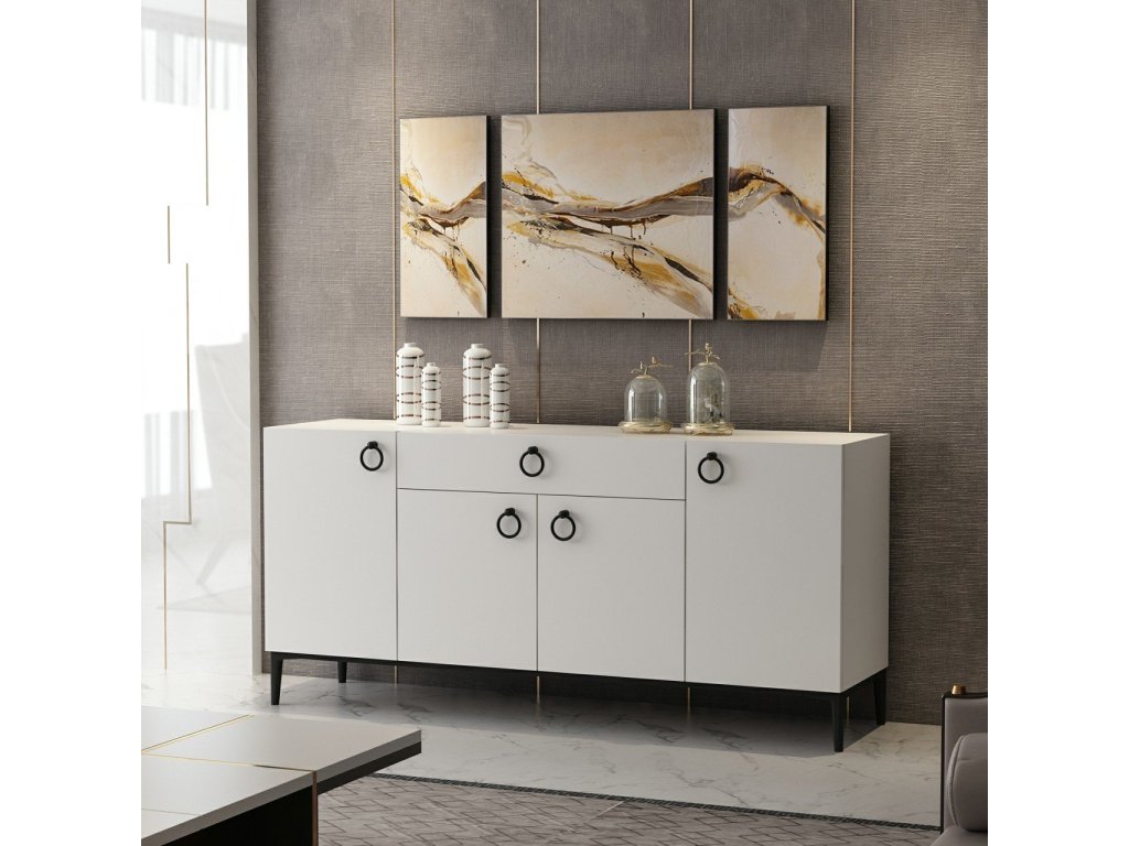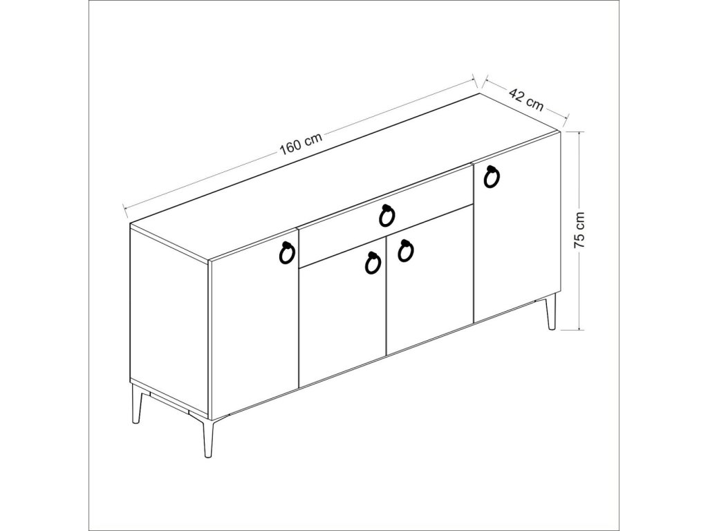 Komoda je ideální volbou pro ty, kteří hledají praktický a stylový úložný prostor. Díky svému skandinávskému designu a kvalitnímu zpracování dodá vašemu obývacímu pokoji moderní vzhled. Komoda je vybavena čtyřmi dvířky a jednou zásuvkou, což zajišťuje dostatek úložného prostoru pro vaše potřeby.