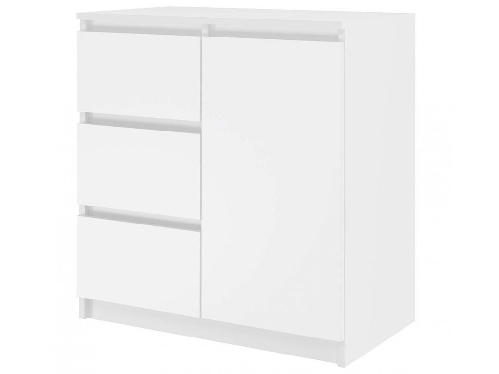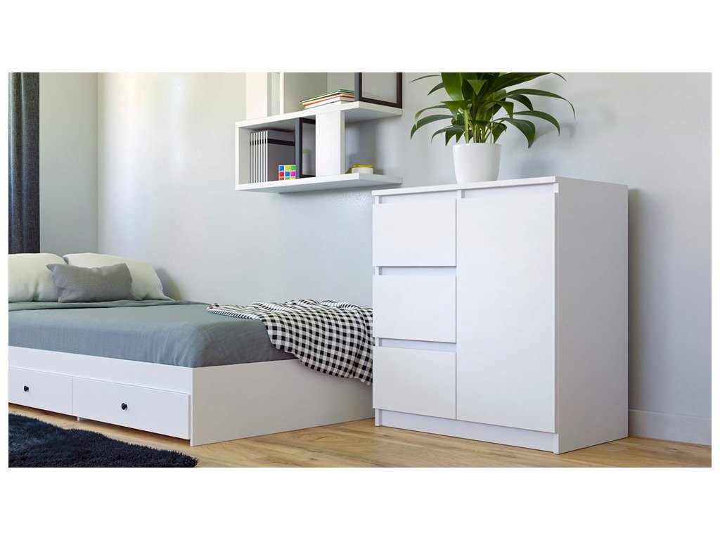 Moderní komoda, která se skvěle hodí do ložnice, obývacího nebo dětského pokoje. Její univerzální vzhled splňuje očekávání těch, kteří ocení spojení jednoduchosti a elegance. Vnitřek komody se skládá ze dvou polic a tří šuplíků, které vám pomohou s uspořádáním vašich věcí. Minimalistická konstrukce a šuplíky bez madel dodávají komodě moderní vzhled. Vyrobeno z kvalitní LTD desky, která má tloušťku 16 mm a je nenáročná na údržbu. Dodáváme v demontu.