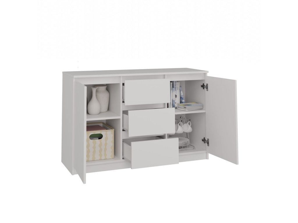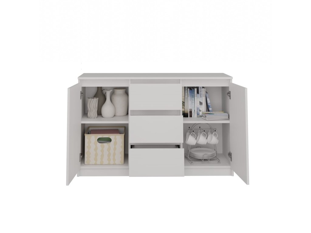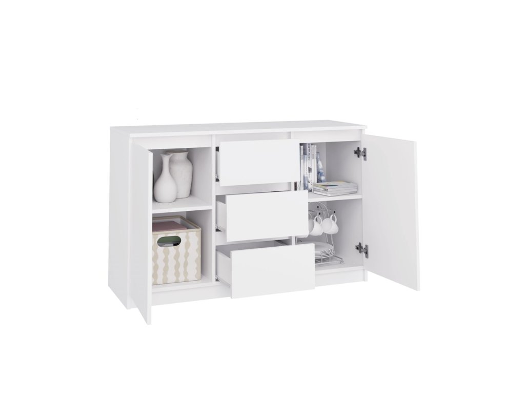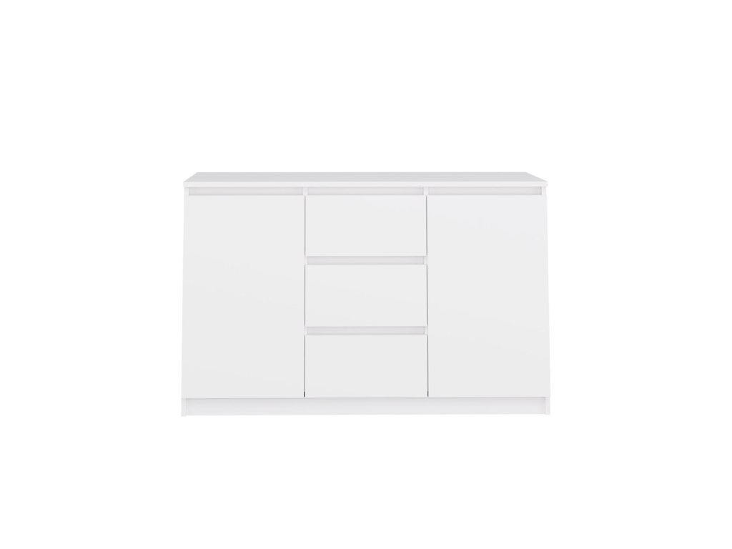 Moderní komoda, která se skvěle hodí do ložnice, obývacího nebo dětského pokoje. Její univerzální vzhled splňuje očekávání těch, kteří ocení spojení jednoduchosti a elegance. Vnitřek komody obsahuje tři šuplíky a dvě police, které vám pomohou s uspořádáním vašich věcí. Minimalistická konstrukce a šuplíky bez madel dodávají komodě moderní vzhled. Vyrobeno z kvalitní LTD desky, která má tloušťku 16 mm a je nenáročná na údržbu. Dodáváme v demontu.