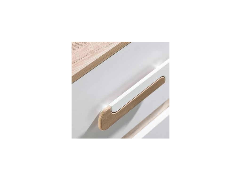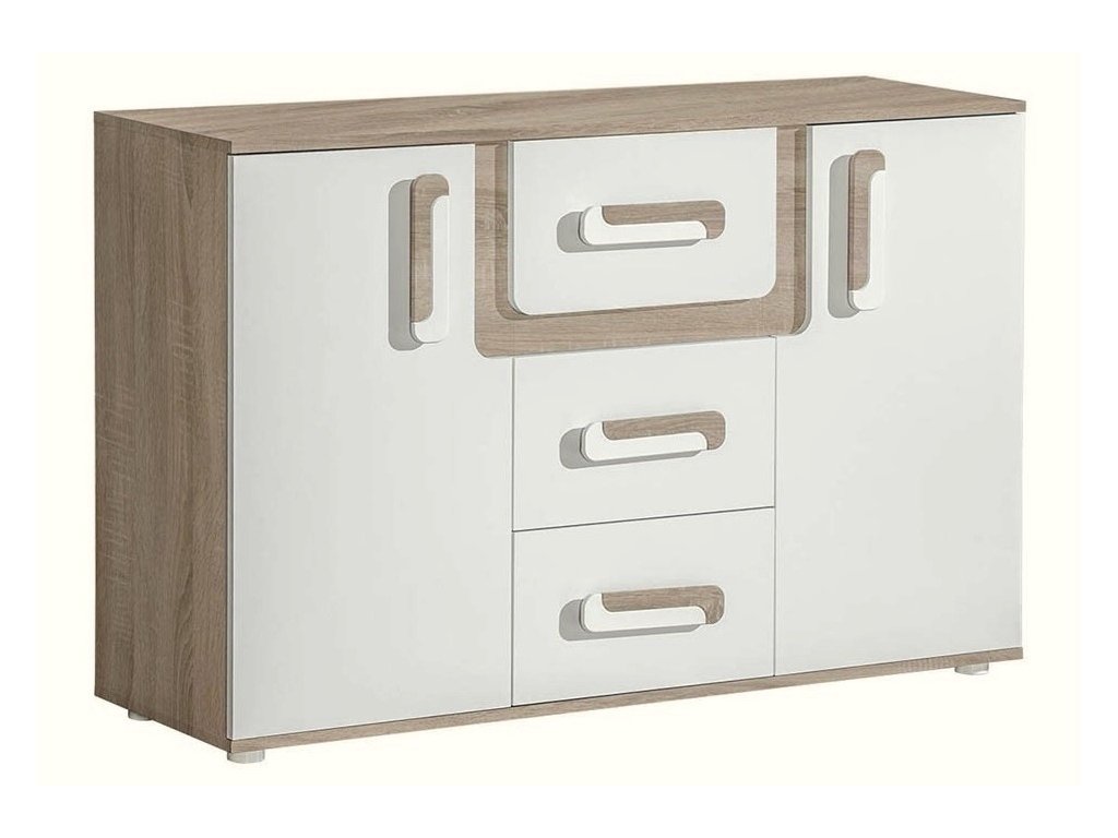 Komoda APETTITA ze sektorové řady, která se vyznačuje netradičním zpracováním barev a originalitou úchytů. Tento styl nábytku zaujme každou mladší generaci. Nábytek je vyroben z kvalitní LTD desky hraněné ABS lištou. Korpus je v barvě dub jasný, dvířka a čela zásuvek jsou bílé matné. Úchytky jsou v barevné kombinaci dub jasný/bílá. Sektorový nábytek APETTITA má široký výběr prvků, který Vám zaručí sestavit si dětský nebo studentský pokoj, ložnici či kancelář podle svých potřeb, přání a představ. Dodáváme v demontovaném stavu.Doplňkové parametry