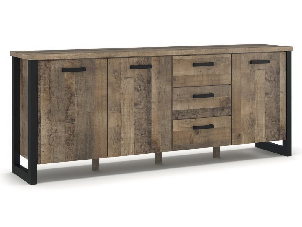 Komoda se 3 dvířky a 3 zásuvkami v industriálním stylu je vyrobena z LTD desky v barevném provedení dub grange. Stabilní konstrukce s nožkama je z desky MDF černé barvy. Úchyty jsou také černé. Nabídka komponentů této sektorové řady umožňuje sestavit si nábytek dle vlastních představ. Dodáváme v demontovaném stavu.Doplňkové parametry