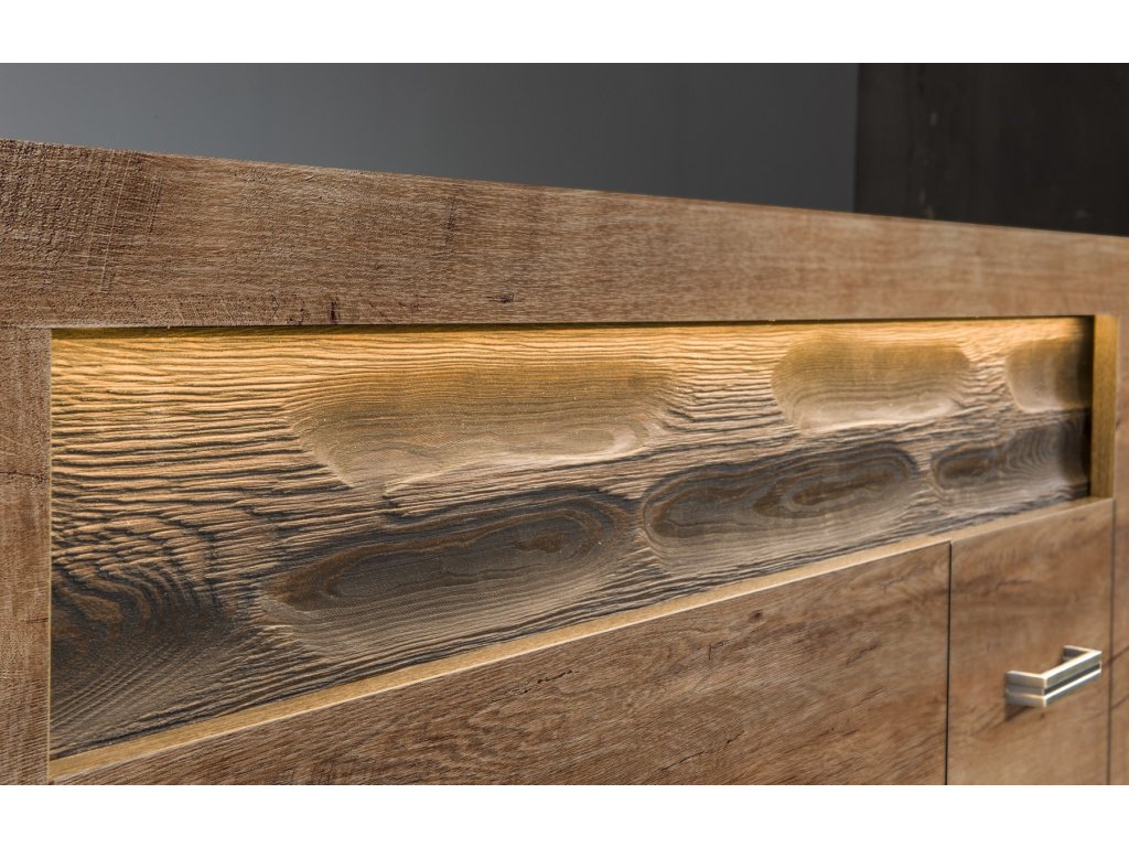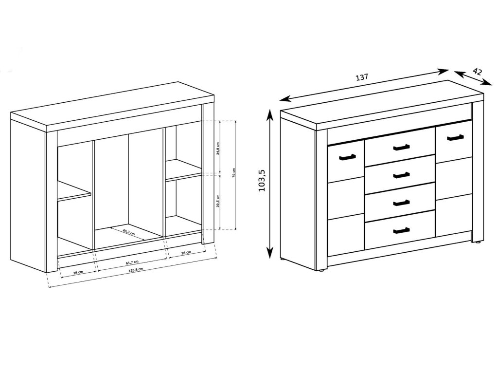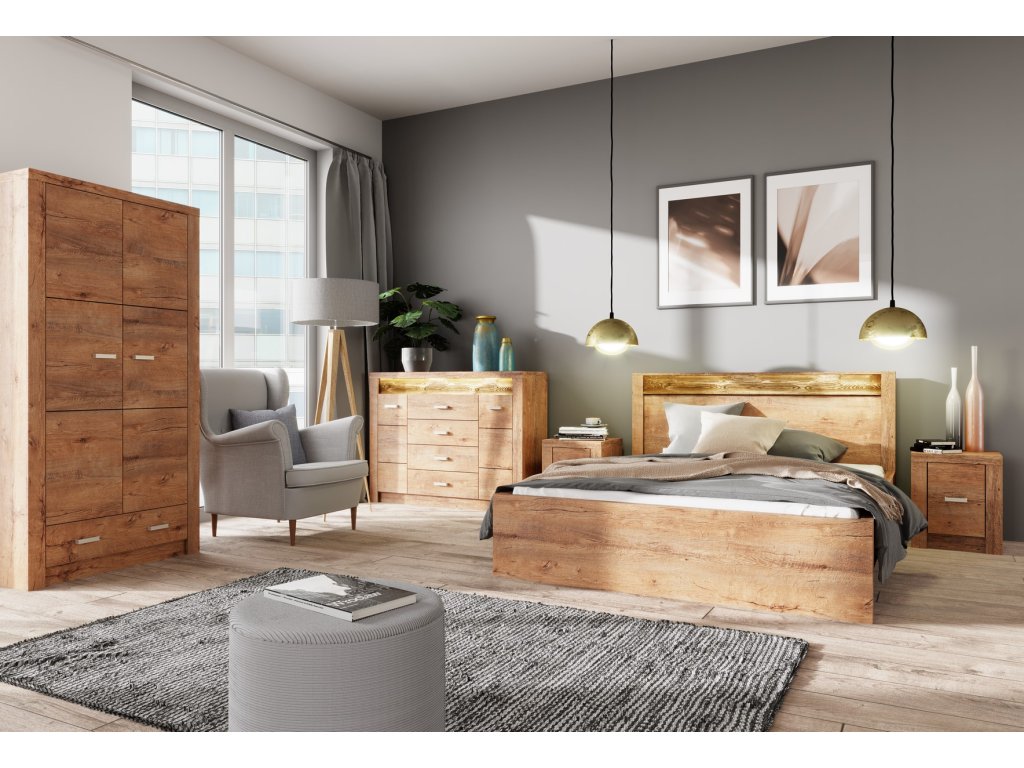 Komoda ze sektorové řady. Komoda obsahuje 4 zásuvky, za dvířky jsou 2 police. Systém je exkluzivní kolekce navržena v moderním duchu. Vsazením LED osvětlení do ozdobné rýhované lišty, které najdete v naší další nabídce k dokoupení, je zvýrazněn rustikální vzhled masivního dřeva. Celá řada se vyznačuje elegancí a jednoduchými tvary, které zaručují plné využití prostoru. Nábytek je vyroben z kvalitního lamina s ABS hrany ( 0,5-0,8 mm ). Barevné provedení jasan světlý. Dodáváme v demontovaném stavu.Doplňkové parametry