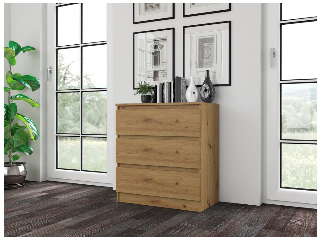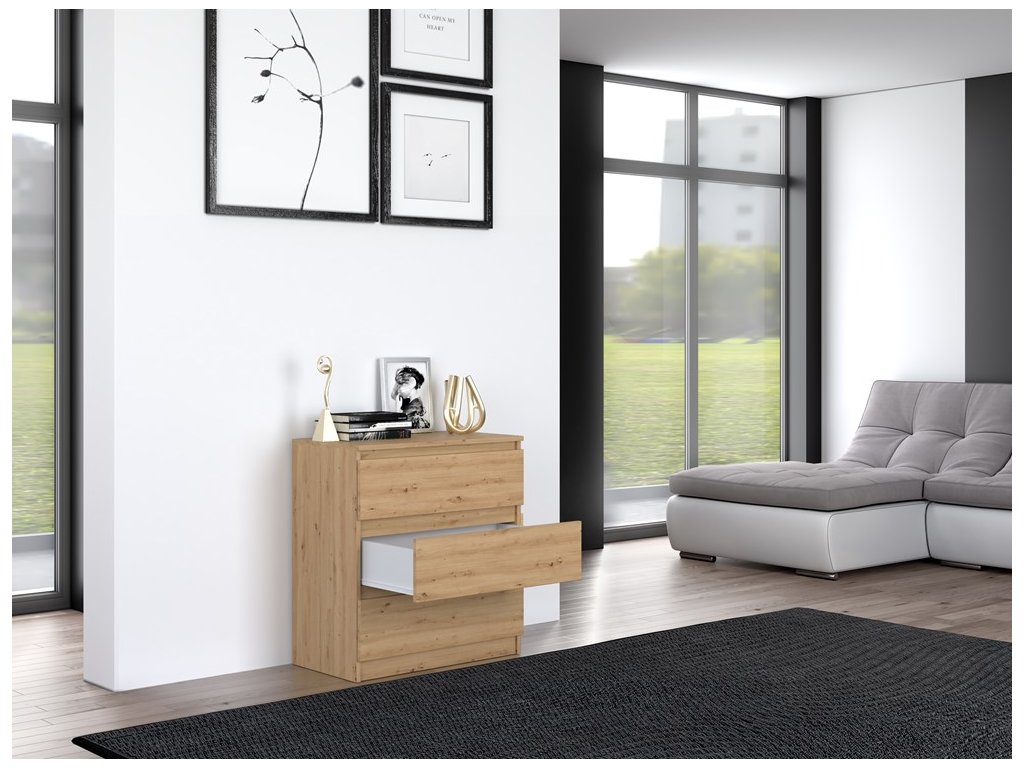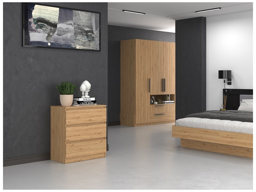 Moderní komoda z kolekce MALWA představuje funkční a prostorný kus nábytku, který skvěle poslouží jako praktický a stylový doplněk vaší ložnice, obývacího pokoje nebo dokonce dětského pokoje. Svým univerzálním designem splňuje očekávání všech těch, kteří upřednostňují spojení jednoduchosti a elegance ve svém domově. Jeho minimalistická konstrukce a šuplíky bez madel dodávají komodě moderní vzhled, ale zároveň zajišťují pohodlné a bezproblémové používání. Vyrobeno z kvalitní LTD desky, která má tloušťku 16 mm a je nenáročná na údržbu. Dodáváme v demontu. V naší další nabídce naleznete kompletní sortiment z kolekce MALWA.