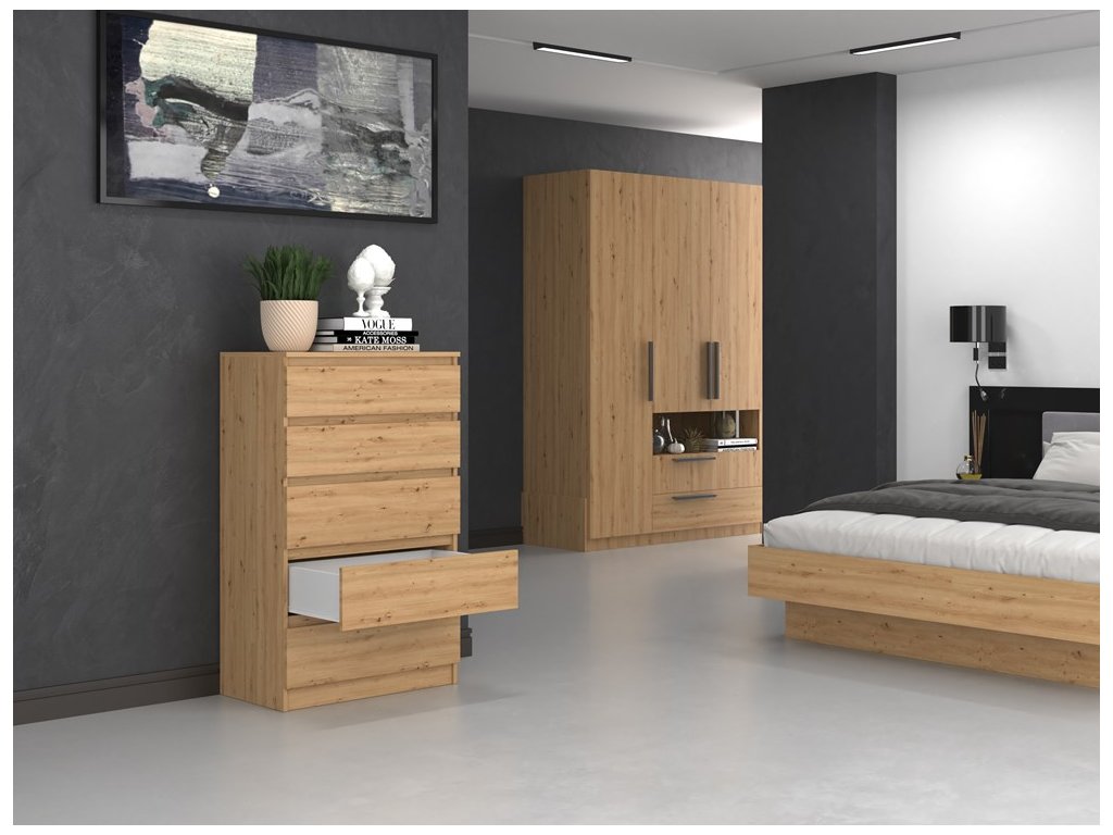 Moderní komoda z kolekce MALWA představuje funkční a prostorný kus nábytku, který skvěle poslouží jako praktický a stylový doplněk vaší ložnice, obývacího pokoje nebo dokonce dětského pokoje. Svým univerzálním designem splňuje očekávání všech těch, kteří upřednostňují spojení jednoduchosti a elegance ve svém domově. Jeho minimalistická konstrukce a šuplíky bez madel dodávají komodě moderní vzhled, ale zároveň zajišťují pohodlné a bezproblémové používání. Vyrobeno z kvalitní LTD desky, která má tloušťku 16 mm a je nenáročná na údržbu. Dodáváme v demontu. V naší další nabídce naleznete kompletní sortiment z kolekce MALWA.Doplňkové parametry
