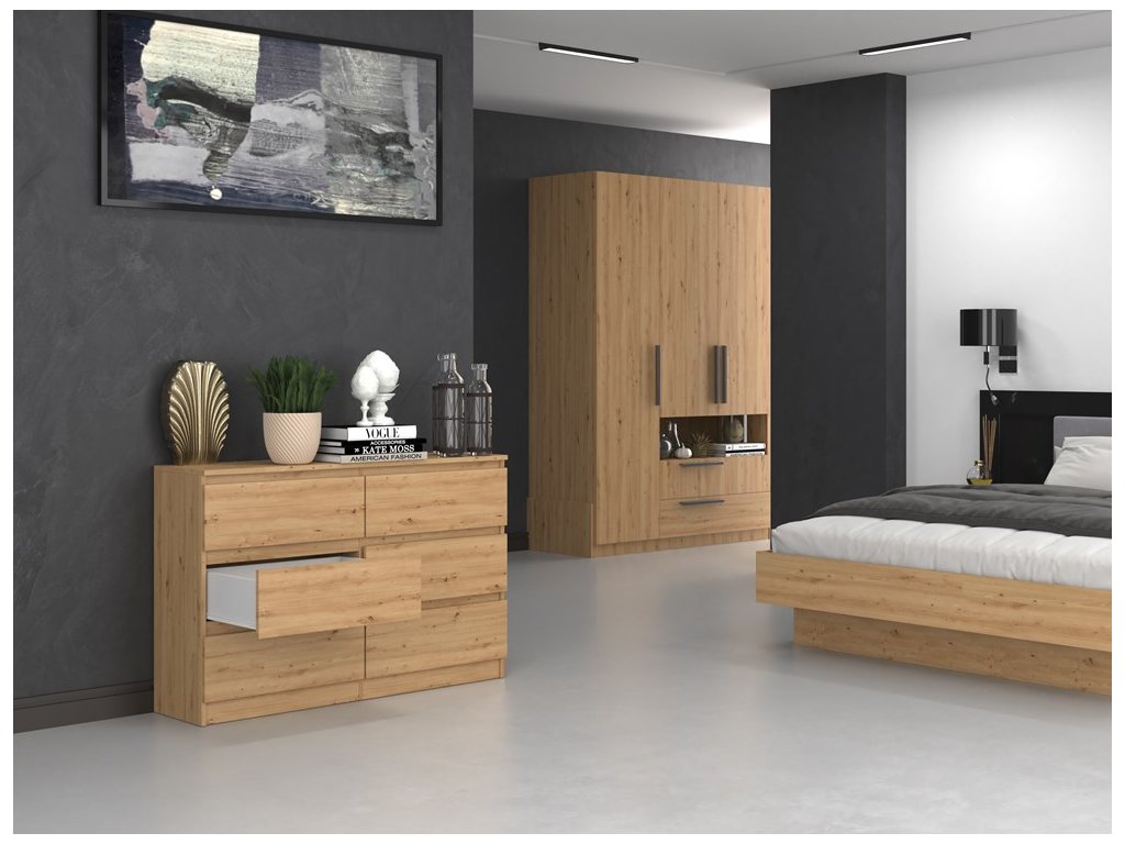 Moderní komoda z kolekce MALWA představuje funkční a prostorný kus nábytku, který skvěle poslouží jako praktický a stylový doplněk vaší ložnice, obývacího pokoje nebo dokonce dětského pokoje. Svým univerzálním designem splňuje očekávání všech těch, kteří upřednostňují spojení jednoduchosti a elegance ve svém domově. Jeho minimalistická konstrukce a šuplíky bez madel dodávají komodě moderní vzhled, ale zároveň zajišťují pohodlné a bezproblémové používání. Vyrobeno z kvalitní LTD desky, která má tloušťku 16 mm a je nenáročná na údržbu. Dodáváme v demontu. V naší další nabídce naleznete kompletní sortiment z kolekce MALWA.Doplňkové parametry