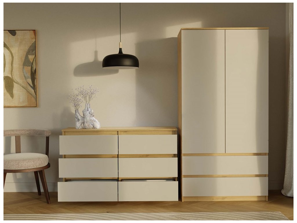 Moderní komoda z kolekce MALWA představuje funkční a prostorný kus nábytku, který skvěle poslouží jako praktický a stylový doplněk vaší ložnice, obývacího pokoje nebo dokonce dětského pokoje. Svým univerzálním designem splňuje očekávání všech těch, kteří upřednostňují spojení jednoduchosti a elegance ve svém domově. Minimalistická konstrukce a šuplíky bez madel dodávají komodě moderní vzhled, ale zároveň zajišťují pohodlné a bezproblémové používání. Vyrobeno z kvalitní LTD desky, která má tloušťku 16 mm a je nenáročná na údržbu. Dodáváme v demontu. V naší další nabídce naleznete kompletní sortiment z kolekce MALWA.Doplňkové parametry