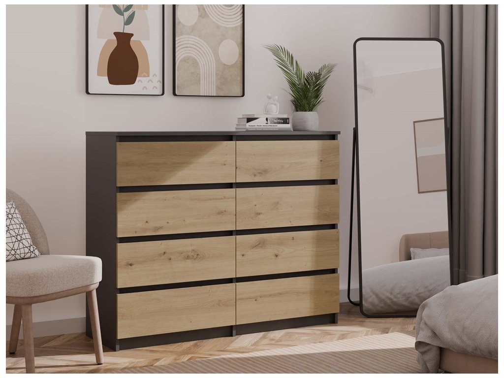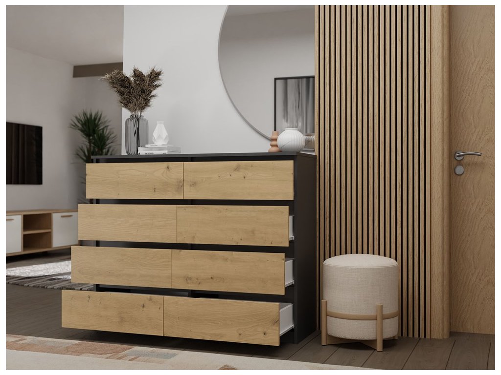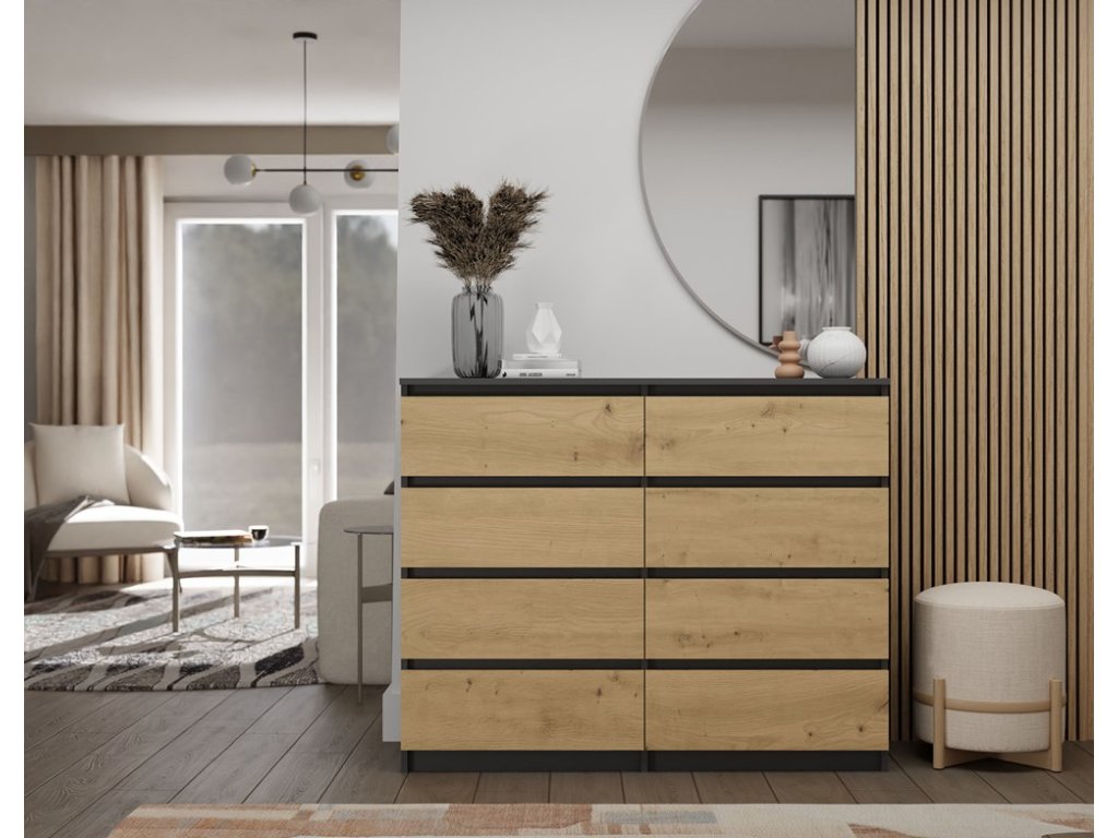 Moderní komoda z kolekce MALWA představuje funkční a prostorný kus nábytku, který skvěle poslouží jako praktický a stylový doplněk vaší ložnice, obývacího pokoje nebo dokonce dětského pokoje. Svým univerzálním designem splňuje očekávání všech těch, kteří upřednostňují spojení jednoduchosti a elegance ve svém domově. Jeho minimalistická konstrukce a šuplíky bez madel dodávají komodě moderní vzhled, ale zároveň zajišťují pohodlné a bezproblémové používání. Vyrobeno z kvalitní LTD desky, která má tloušťku 16 mm a je nenáročná na údržbu. Dodáváme v demontu. V naší další nabídce naleznete kompletní sortiment z kolekce MALWA.