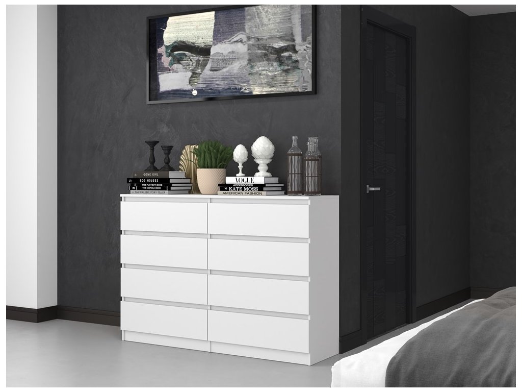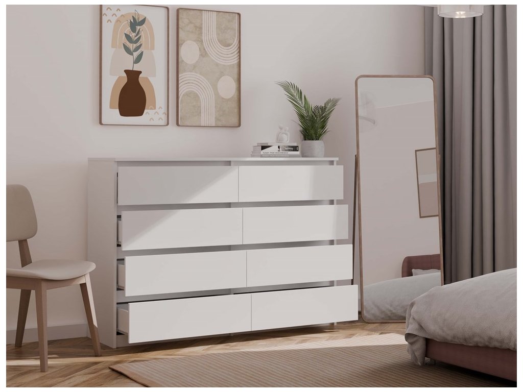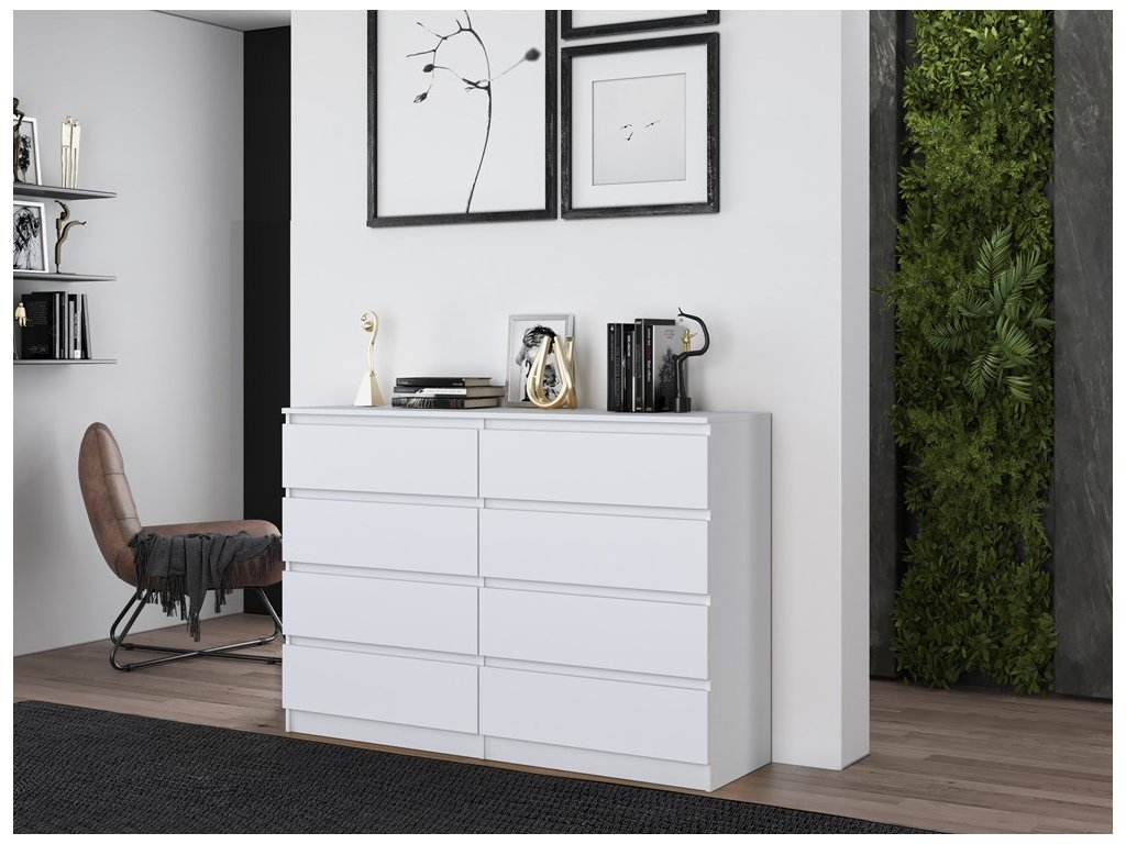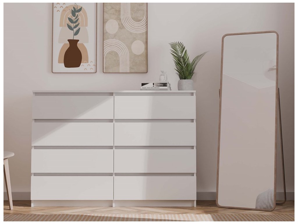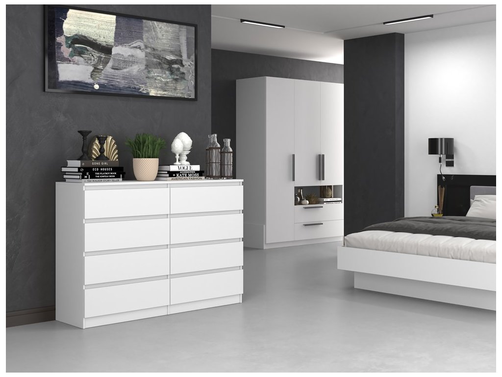 Moderní komoda z kolekce MALWA představuje funkční a prostorný kus nábytku, který skvěle poslouží jako praktický a stylový doplněk vaší ložnice, obývacího pokoje nebo dokonce dětského pokoje. Svým univerzálním designem splňuje očekávání všech těch, kteří upřednostňují spojení jednoduchosti a elegance ve svém domově. Jeho minimalistická konstrukce a šuplíky bez madel dodávají komodě moderní vzhled, ale zároveň zajišťují pohodlné a bezproblémové používání. Vyrobeno z kvalitní LTD desky, která má tloušťku 16 mm a je nenáročná na údržbu. Dodáváme v demontu. V naší další nabídce naleznete kompletní sortiment z kolekce MALWA.Doplňkové parametry