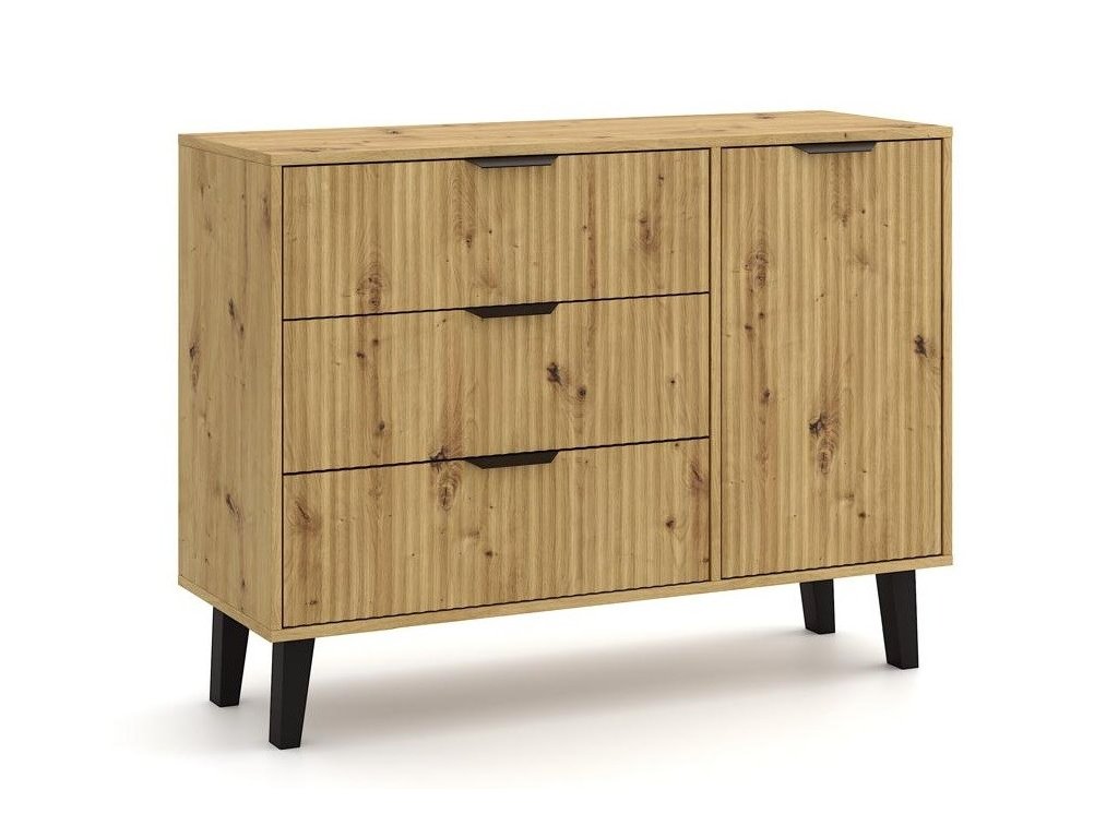 K dispozici jsou tři prostorné zásuvky a jedna skříňka s policí, díky čemuž snadno uložíte oblečení, dokumenty nebo drobné domácí vybavení. Komoda SCANDI 1D3S SLIM tak nabízí nejen atraktivní vzhled, ale také praktické řešení pro každodenní použití.
