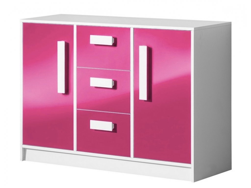 Široká komoda se třemi zásuvkami ve střední části ze sektorové řady GULLIWER, která se vyznačuje netradičním zpracováním barev a originalitou úchytů. Tento styl nábytku zaujme každou mladší generaci. Komoda je vyrobena z kvalitní LTD desky hraněné ABS lištou. Korpus je v barvě bílá mat, u dveří je možnost výběru ze 4 barev v lesku. Úchytky je také možno zvolit dle vlastního výběru z 6-ti barevných odstínů. Sektorový nábytek má široký výběr prvků, který Vám zaručí sestavit si dětský nebo studentský pokoj, ložnici či kancelář podle svých potřeb, přání a představ. Dodáváme v demontovaném stavu. Postup při objednávání: Nejprve si zvolte barvu dvířek v lesku ( viz barva ), poté si zvolte barvu úchytů ( viz rolovací okno ).Doplňkové parametry