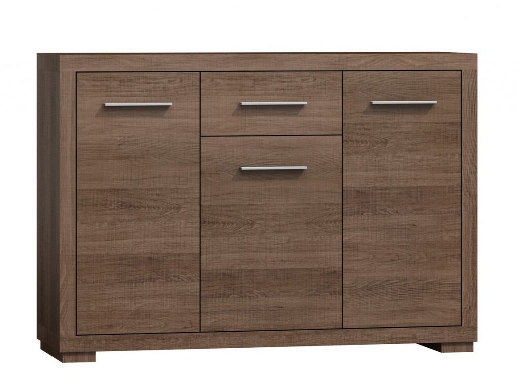 Komoda ze sektorové řady VEGAS má troje dvířka a jednu zásuvku. Systém VEGAS je exkluzivní kolekce navržena v moderním duchu. Celá řada se vyznačuje masivním vzhledem a jednoduchými tvary. Nábytek je vyroben z kvalitního LTD 18 mm, horní, dolní a boční desky mají 48 mm, vše opatřeno ABS páskou. Vyrábí se v různých barevných variantách, kdy lze kombinovat korpus s jinou barvou dvířek nebo mít jednobarevnou kombinaci ( viz výběr barev, kdy okolní barva tvoří korpus a vnitřní barva dvířka ). Má široký výběr komponentů, díky kterým lze vybavit nejen obývací pokoj, ale i jídelnu, kancelář nebo ložnici. Dodáváme v demontovaném stavu.Doplňkové parametry