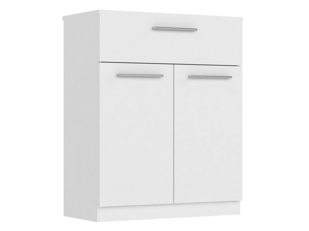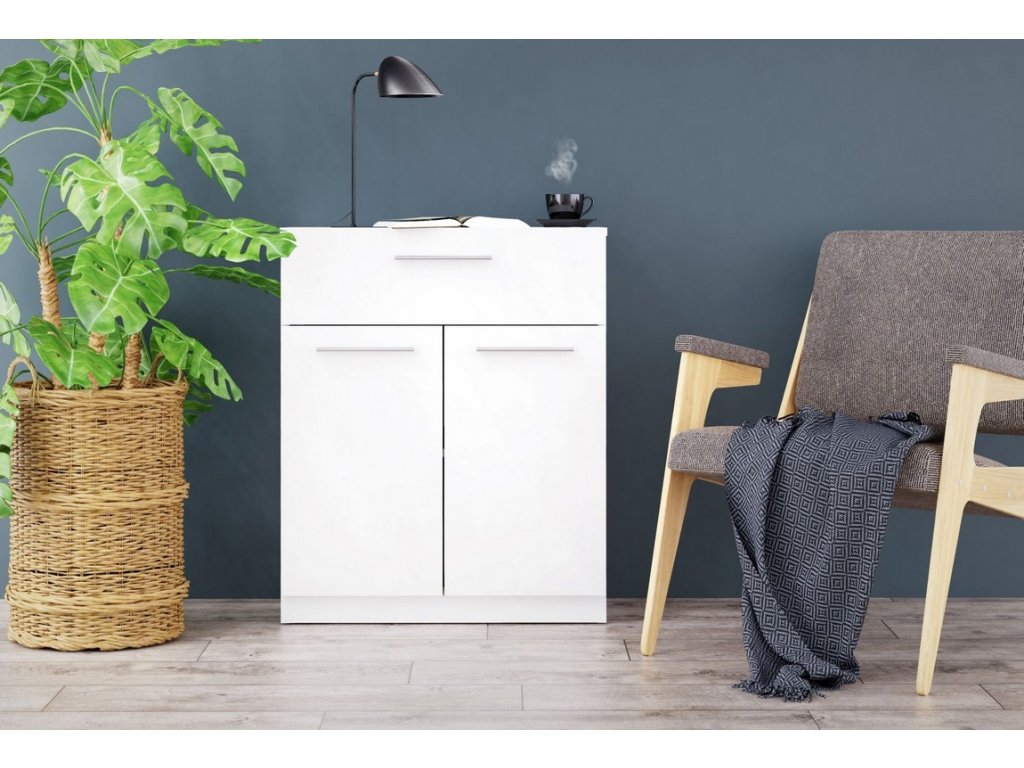 Dvoudveřová komoda se zásuvkou v moderním provedení. Korpus i dvířka jsou z kvalitní LTD (18 mm) v barvě matná bílá. Lamino je odolné vůči vysokým teplotám a poškrábání. Dodáváme v demontovaném stavu.Doplňkové parametry