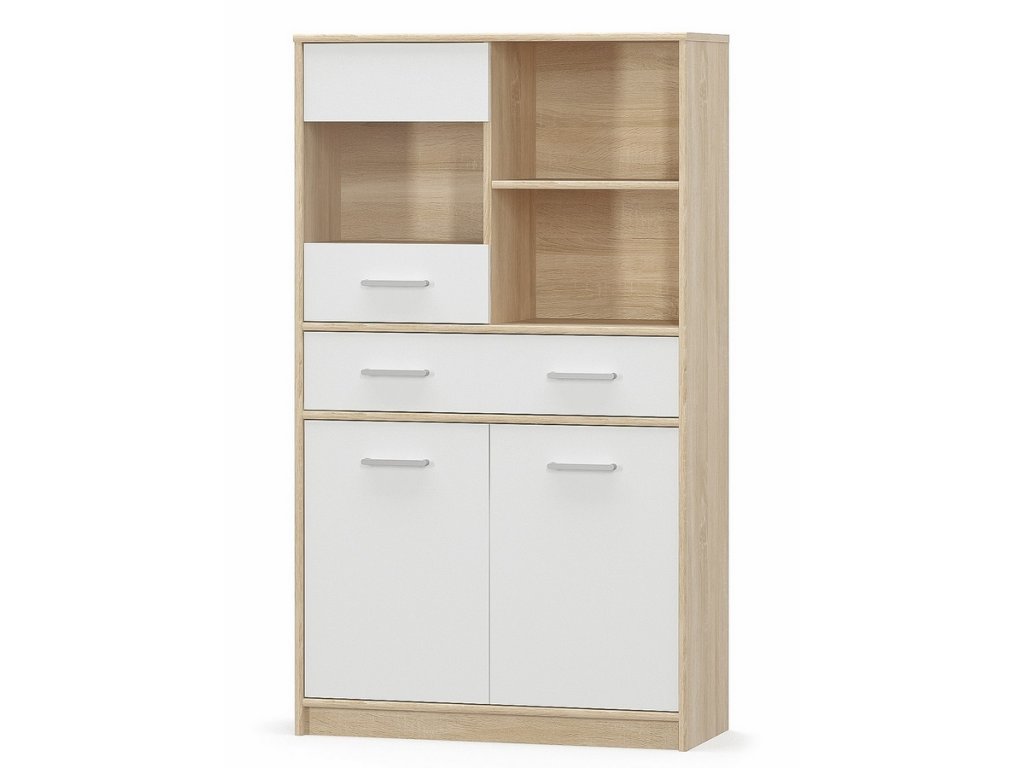 Vysoká komoda ze sektorového nábytku v moderním provedení vyrobena z kvalitní LTD desky v barevné kombinaci dub sonoma / bílá mat. Nabídka komponentů této sektorové řady umožňuje sestavit si nábytek do obývacího, dětského nebo studentského pokoje dle vlastních představ. Dodáváme v demontovaném stavu.Doplňkové parametry