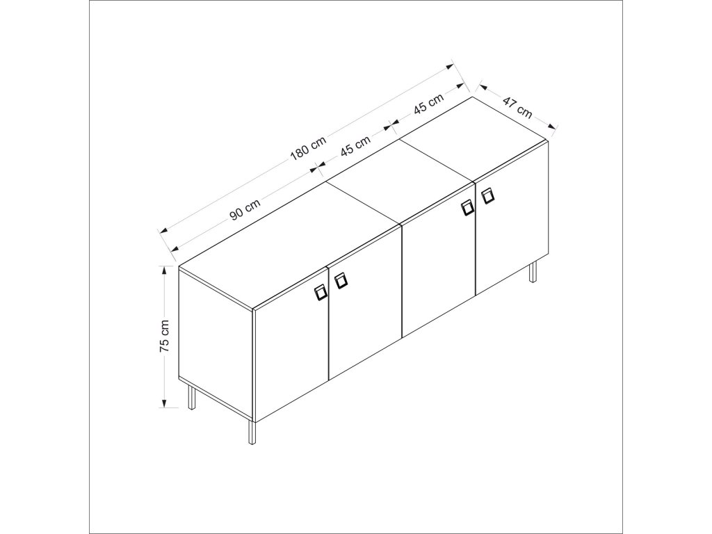 Komoda v moderní barvě pískovce je ideálním řešením pro ty, kteří hledají elegantní úložný prostor do svého obývacího pokoje. Široká konstrukce a čtyři plná dvířka poskytují dostatek prostoru pro organizaci věcí, zatímco její minimalistický design dokonale zapadne do každého interiéru.
