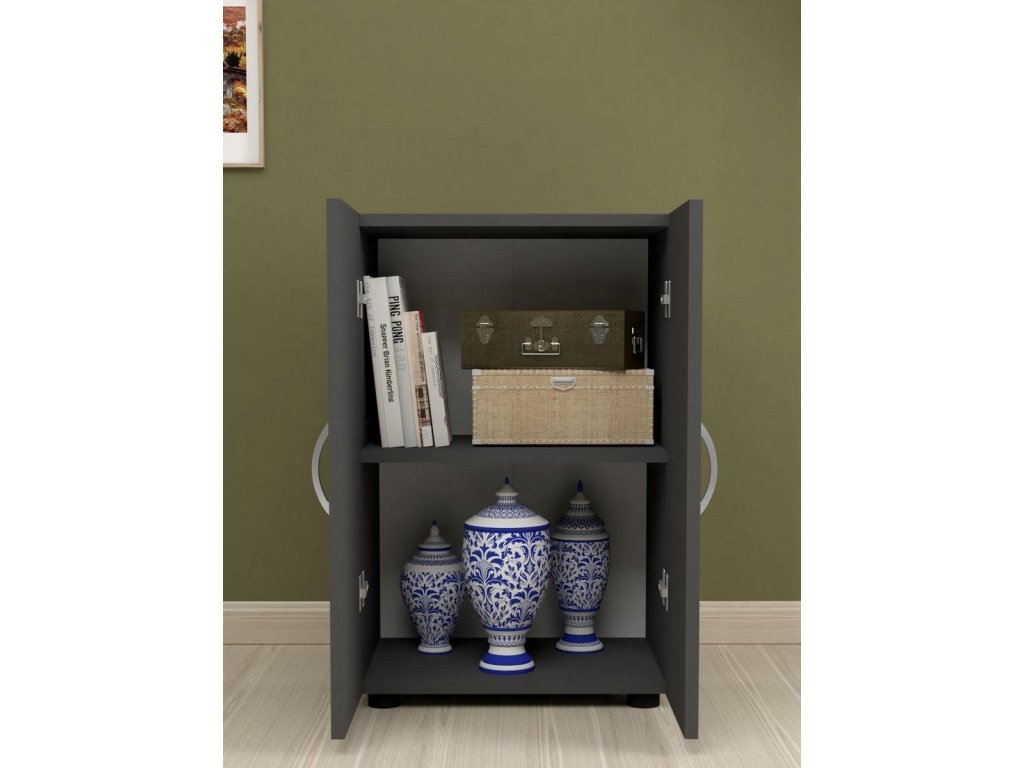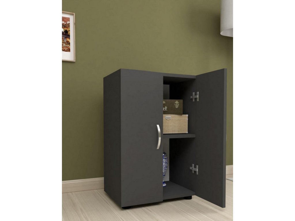 Dvoudveřová nízká komoda je vyrobena z kvalitní LTD desky, která je nenáročná na údržbu. Tloušťka desky - 18 mm. Uvnitř komody je police. Barevné provedení je antracit. Dodáváme v demontovaném stavu.Doplňkové parametry