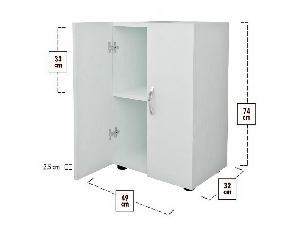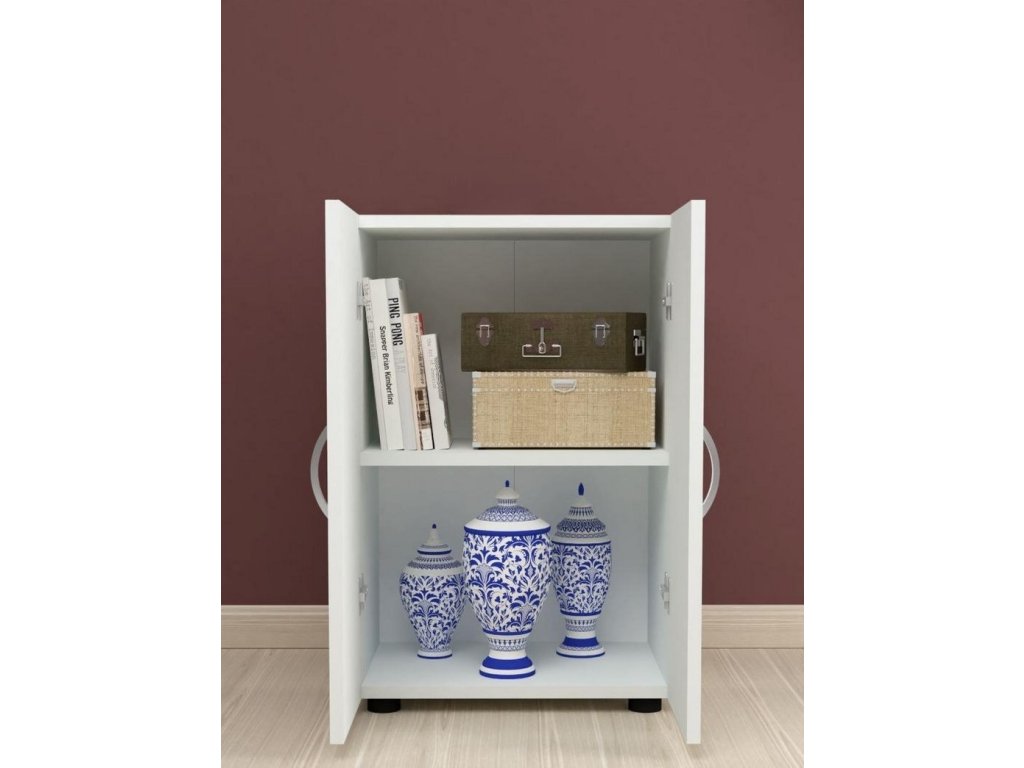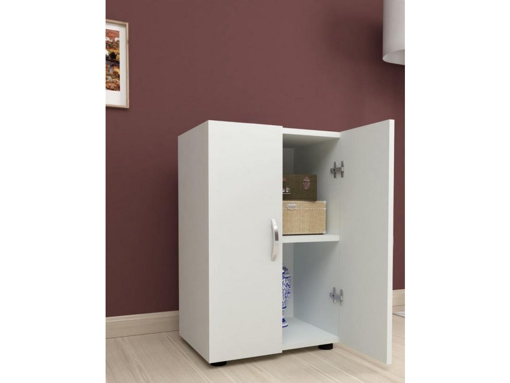 Dvoudveřová nízká komoda je vyrobena z kvalitní LTD desky, která je nenáročná na údržbu. Tloušťka desky - 18 mm. Uvnitř komody je police. Barevné provedení je bílá. Dodáváme v demontovaném stavu.Doplňkové parametry